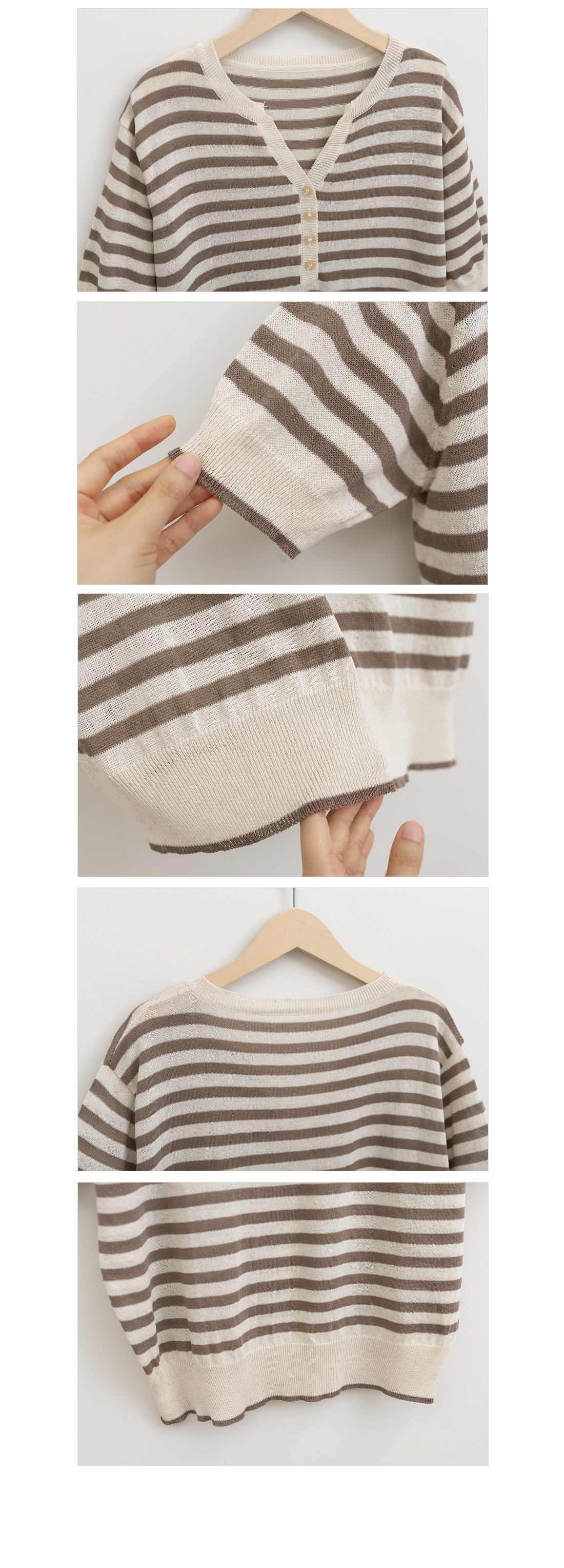 브이넥으로 떨어지는 넥라인에 단추 디테일로