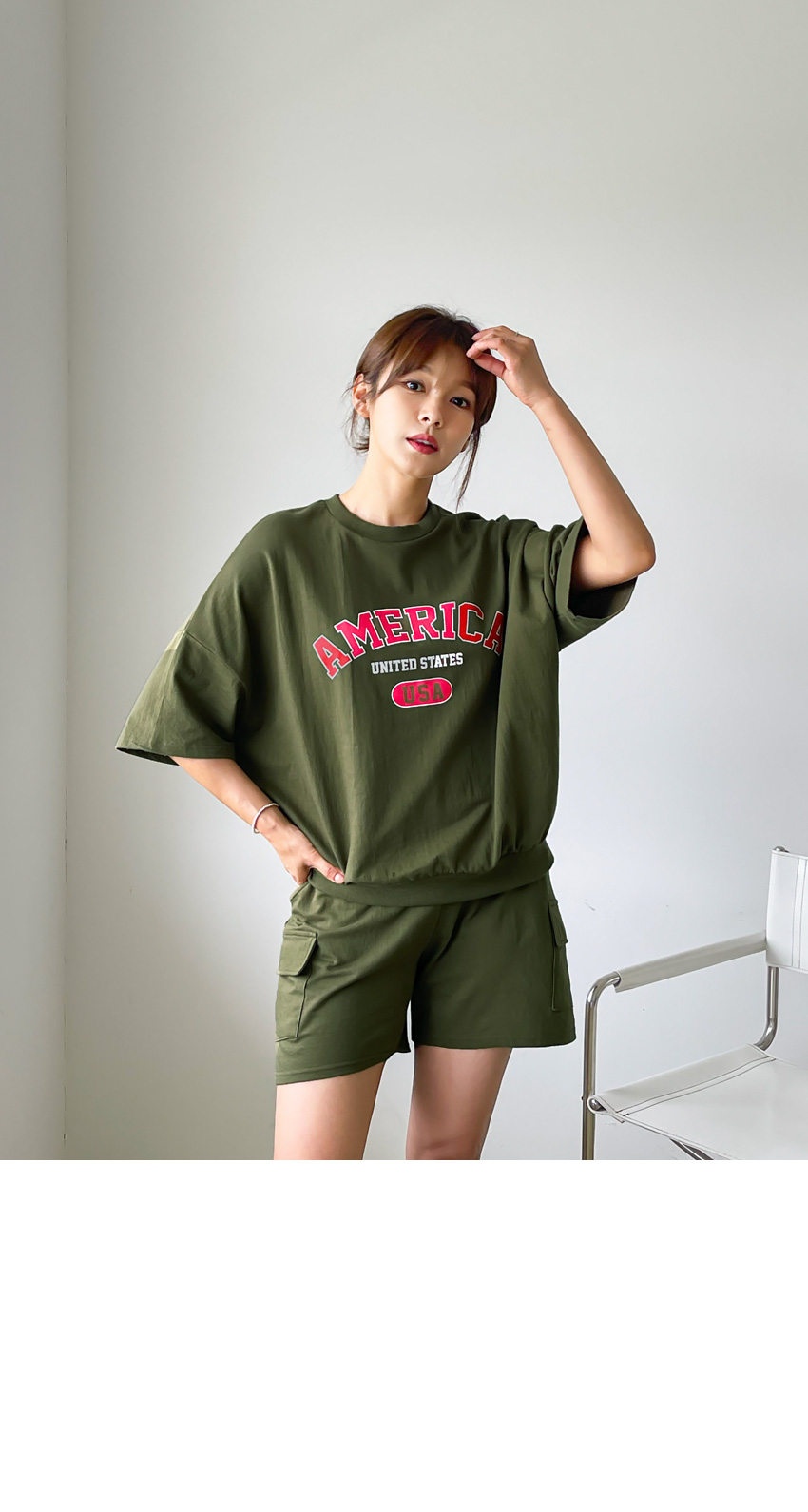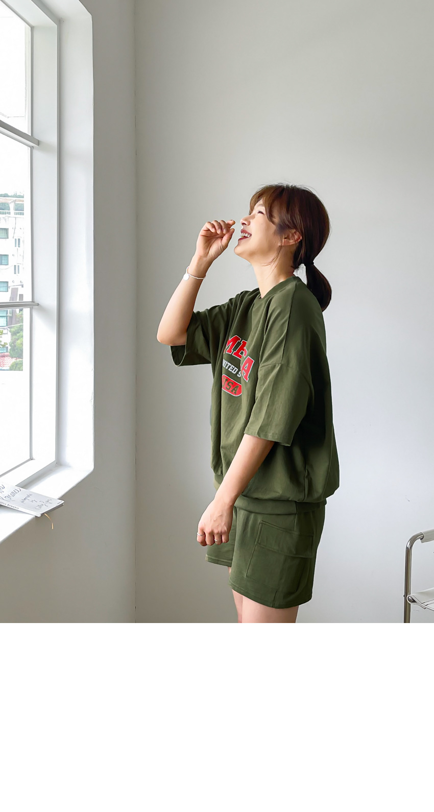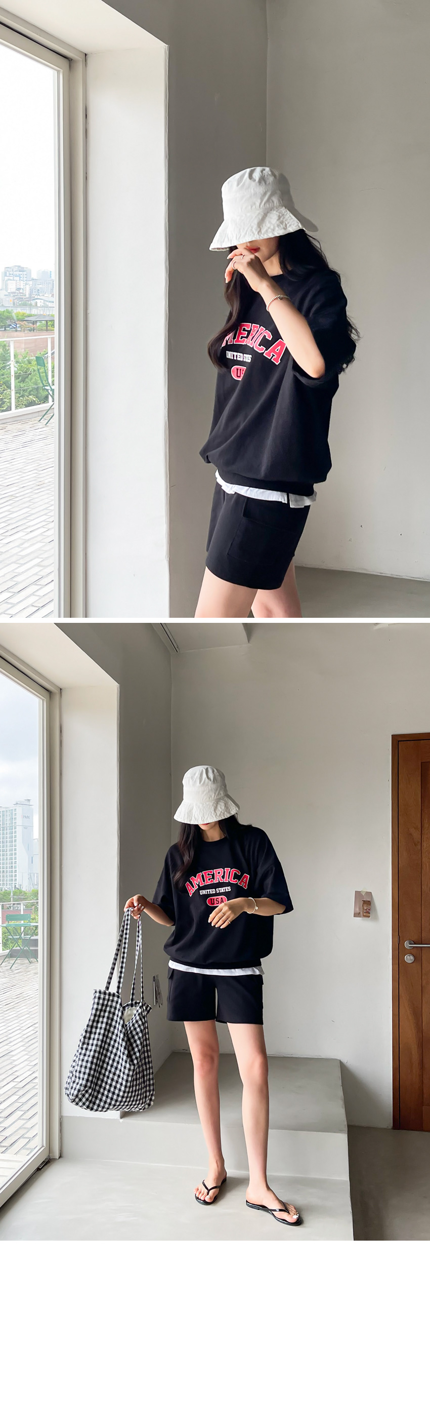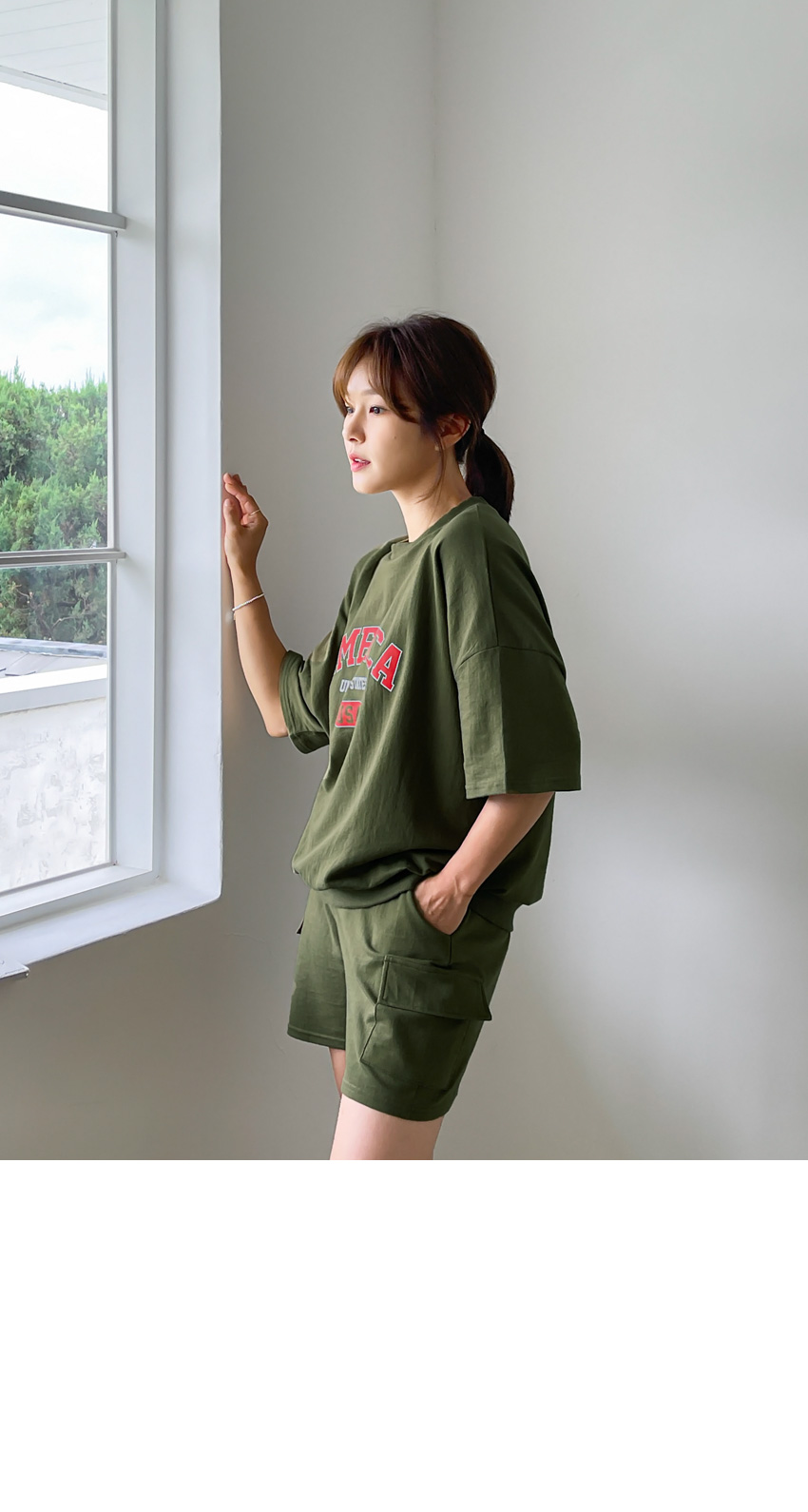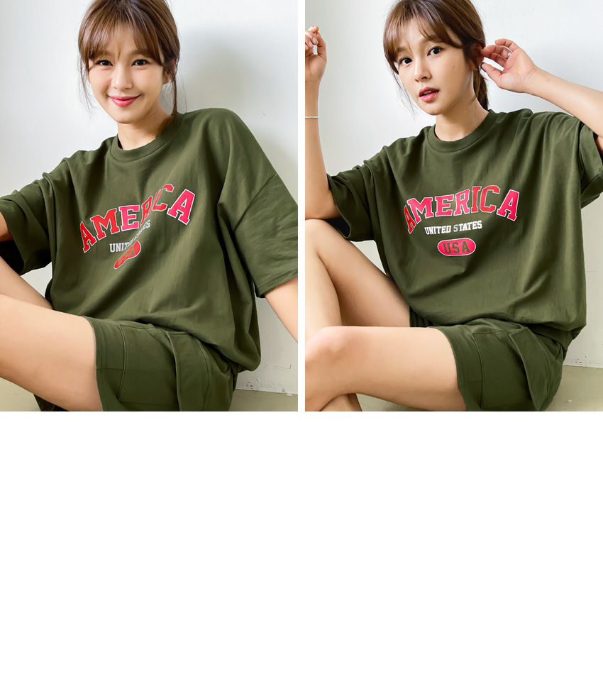F_상하의 넉넉한 핏으로 반팔맨투맨 스타일로 밑단시보리가 있어 내려가지않게 잘잡아주어 만족했어요