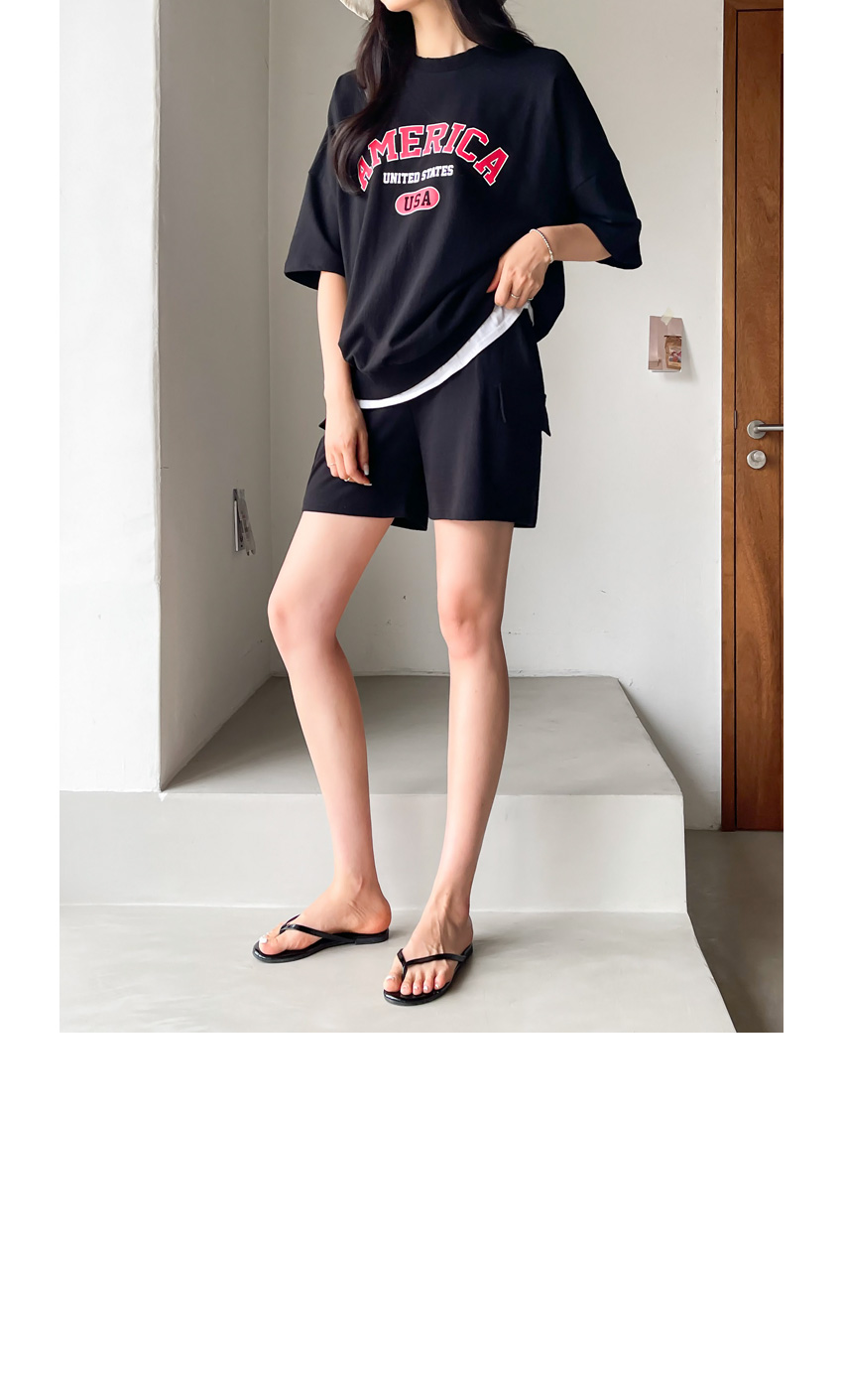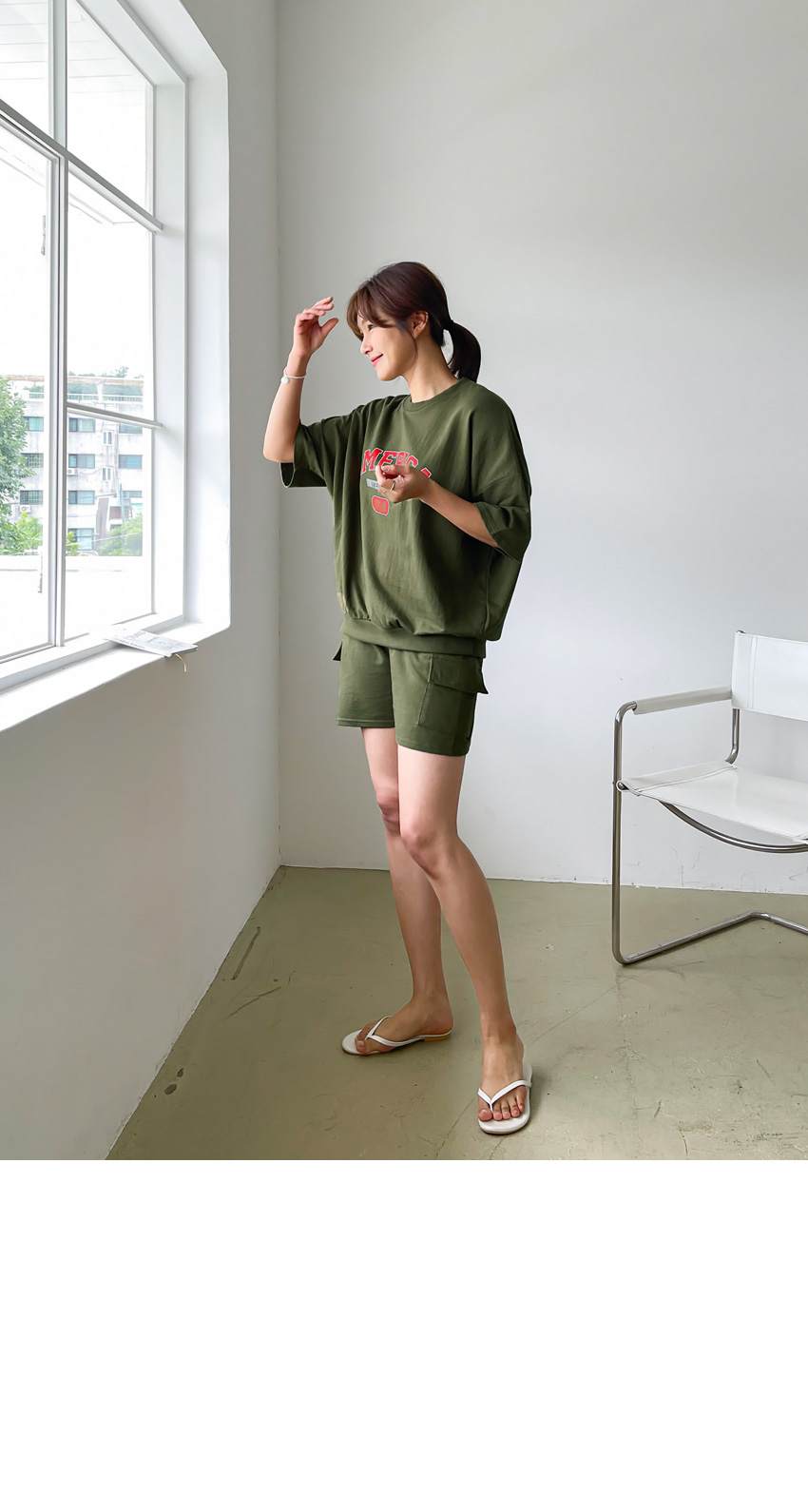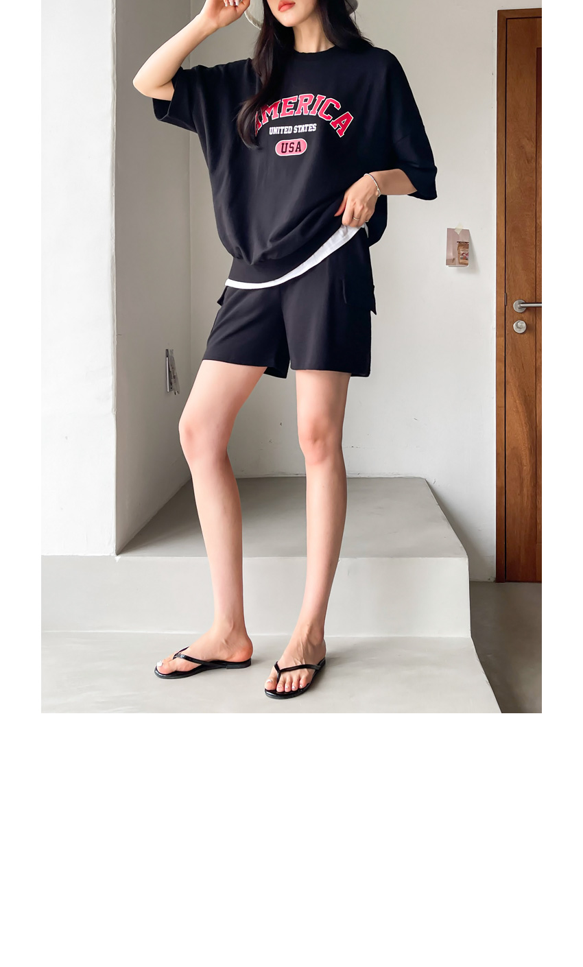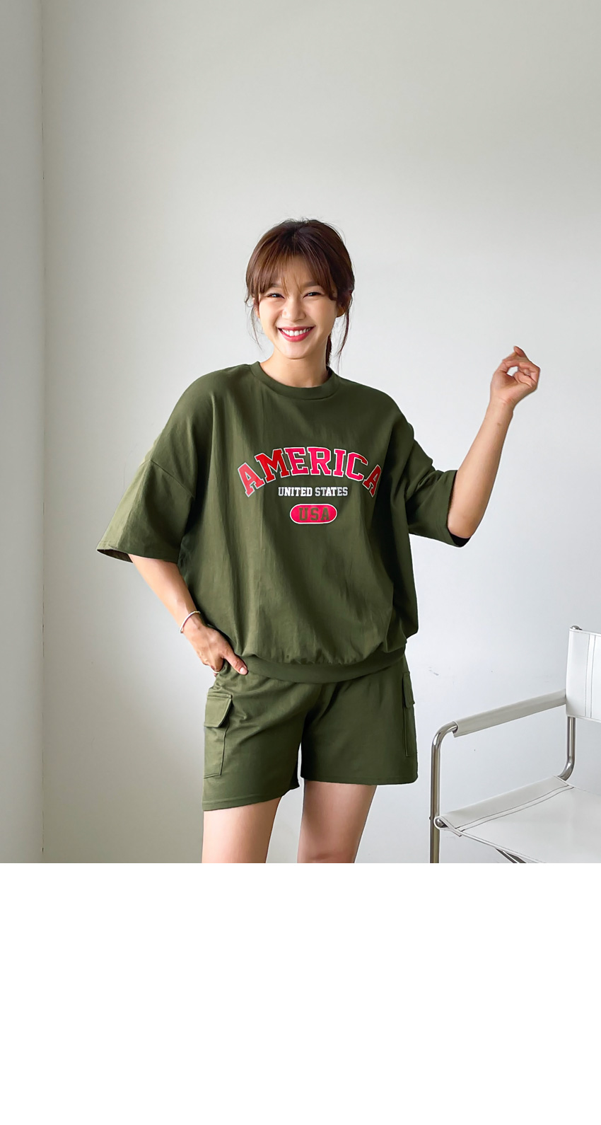 F_상하의 넉넉한 핏으로 반팔맨투맨 스타일로 밑단시보리가 있어 내려가지않게 잘잡아주어 만족했어요
