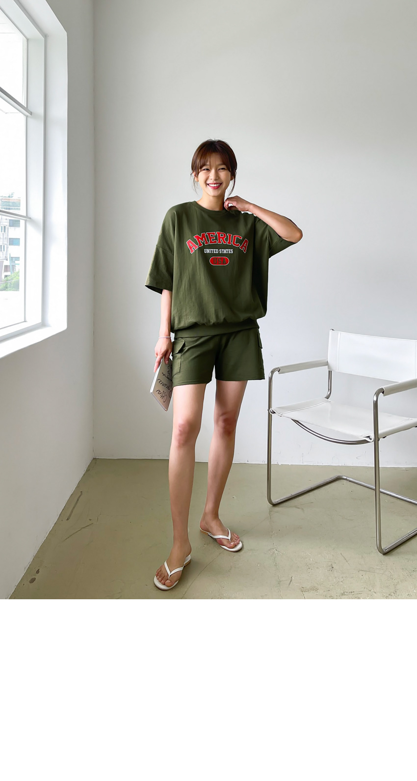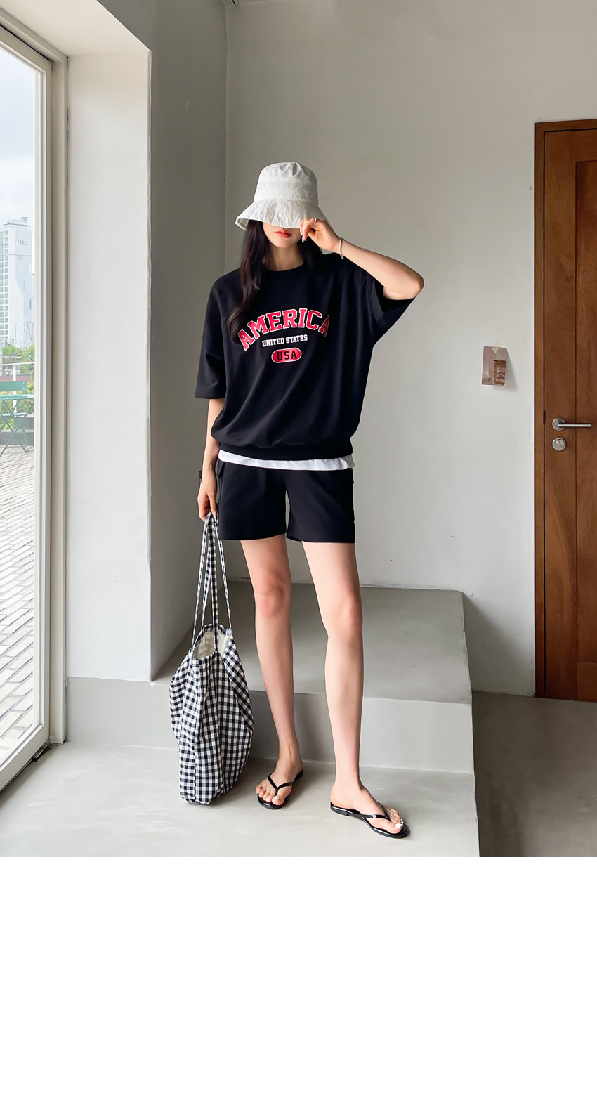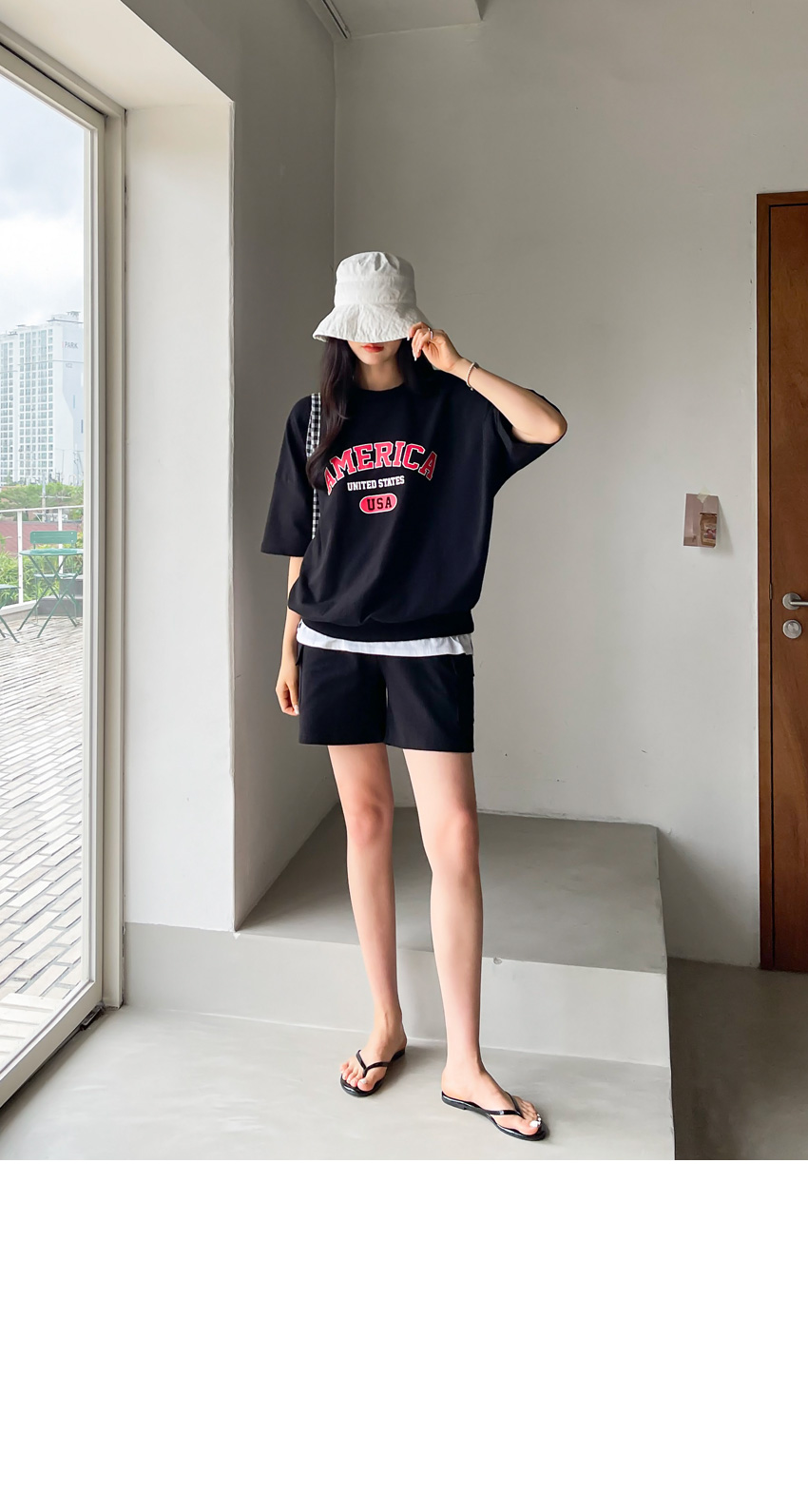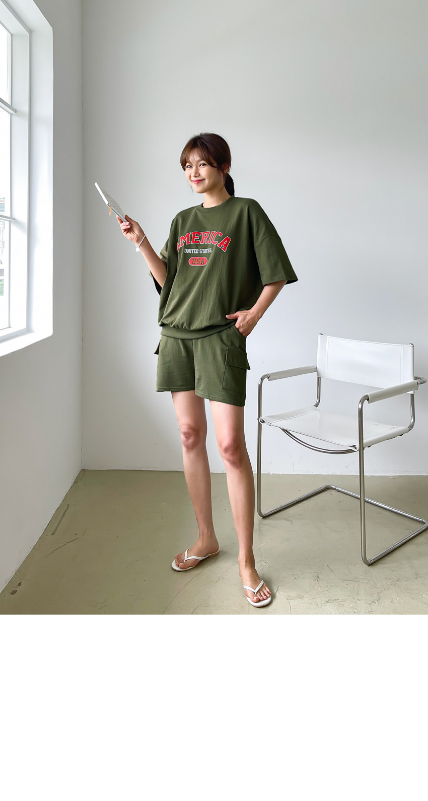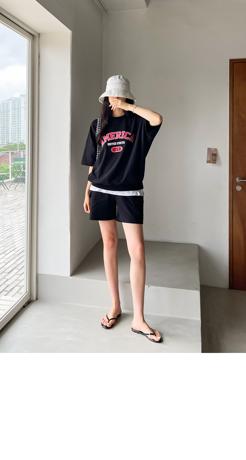 F_상하의 넉넉한 핏으로 반팔맨투맨 스타일로 밑단시보리가 있어 내려가지않게 잘잡아주어 만족했어요
