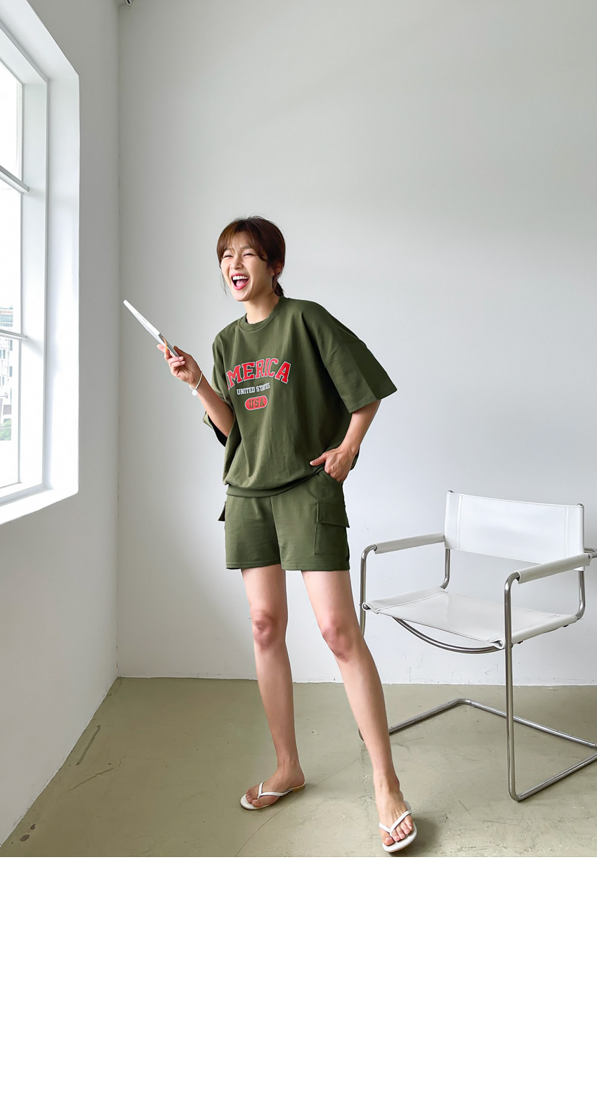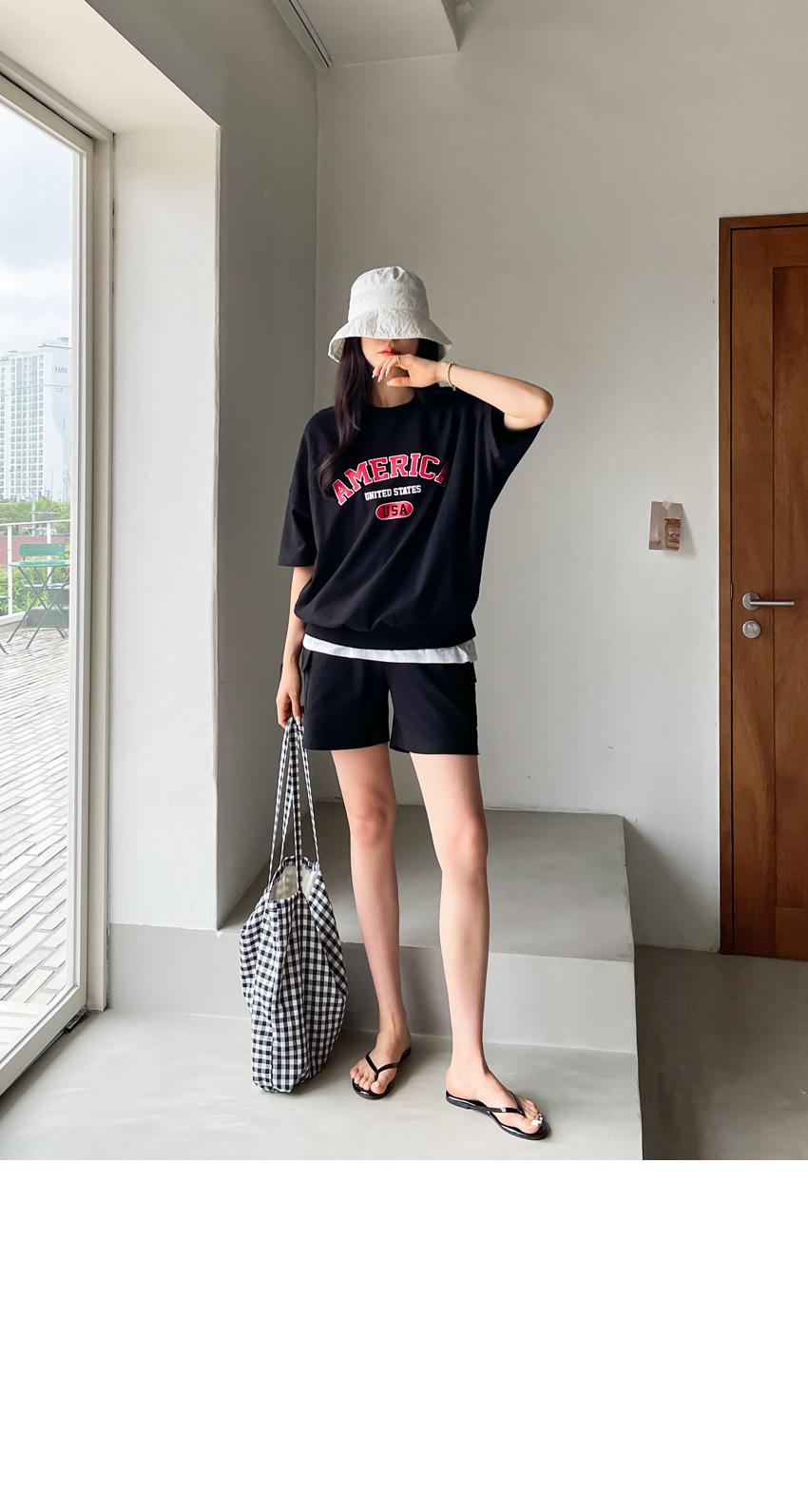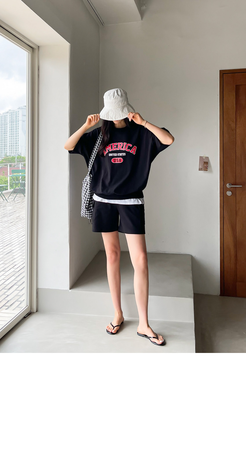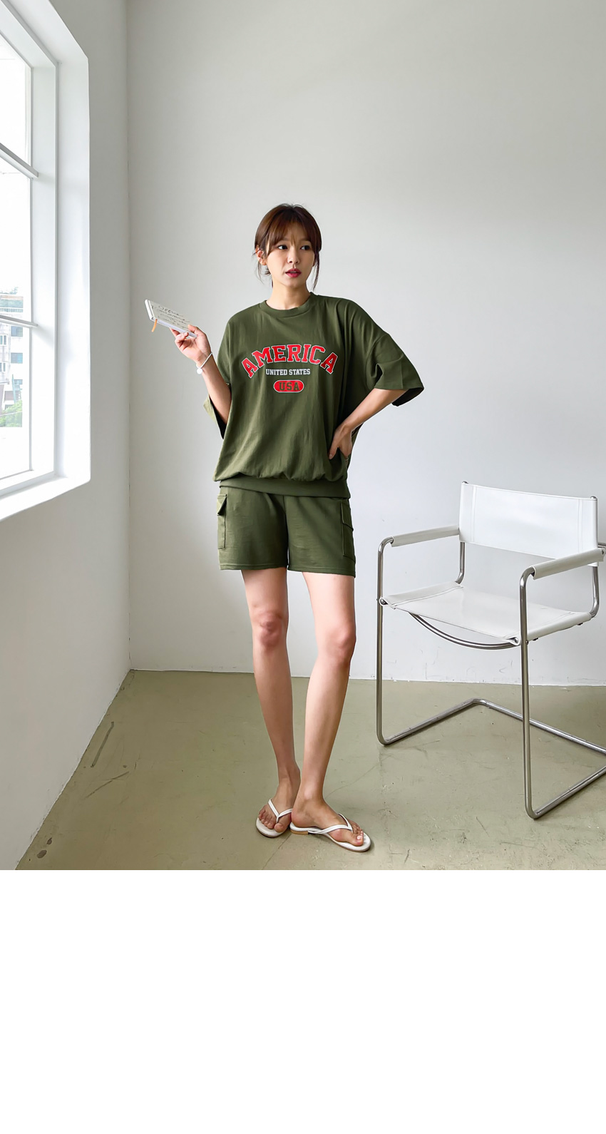 F_상하의 넉넉한 핏으로 반팔맨투맨 스타일로 밑단시보리가 있어 내려가지않게 잘잡아주어 만족했어요