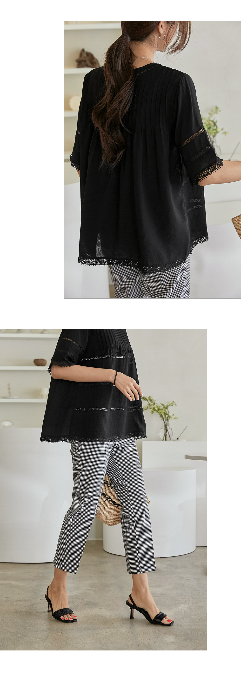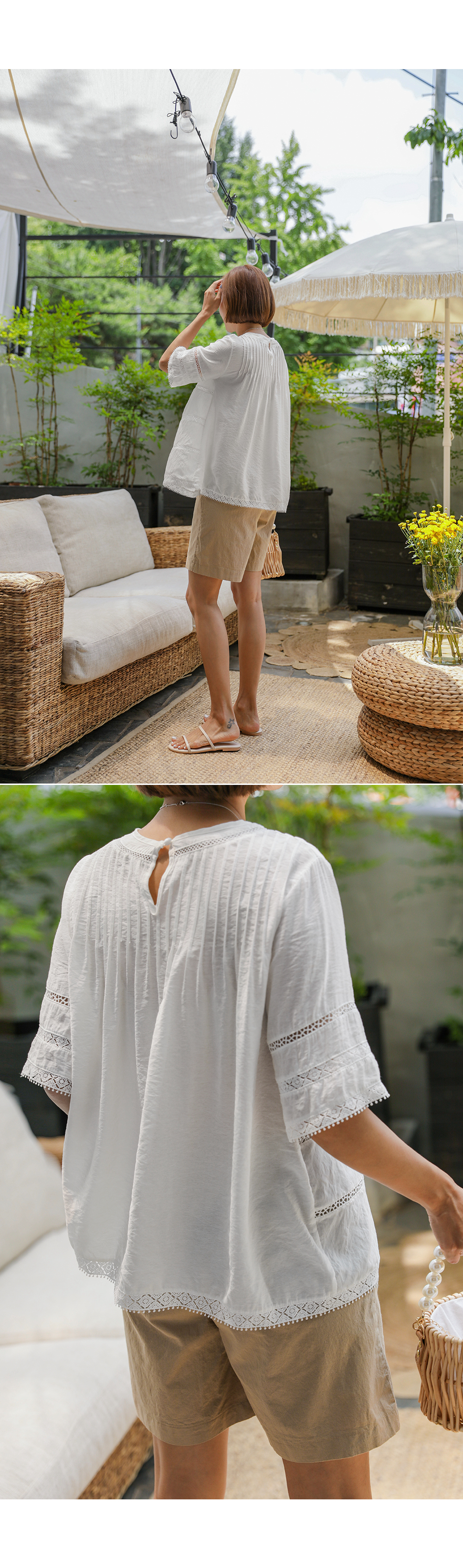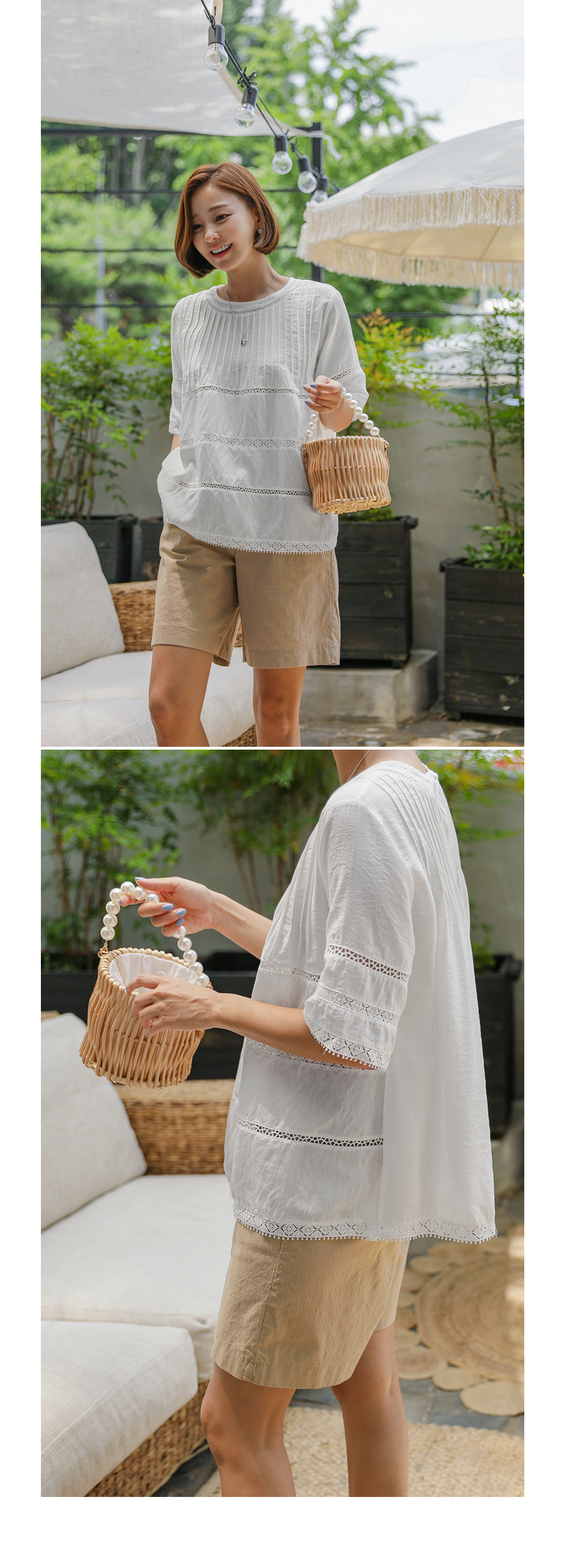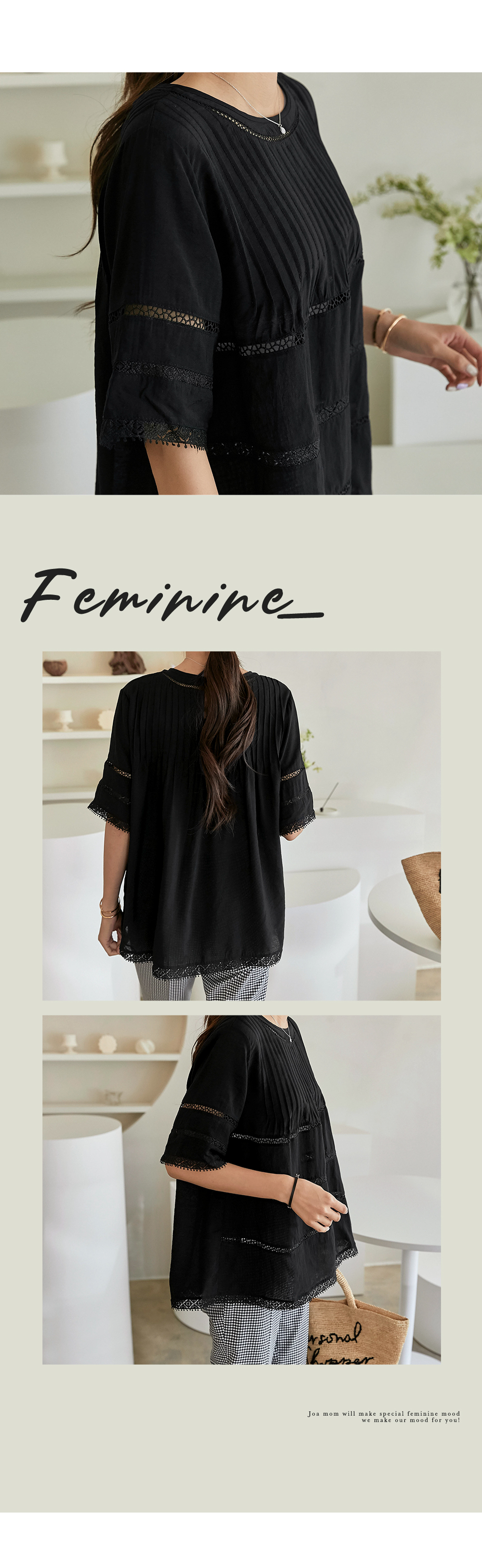 핀턱라인과 레이스의 조화가