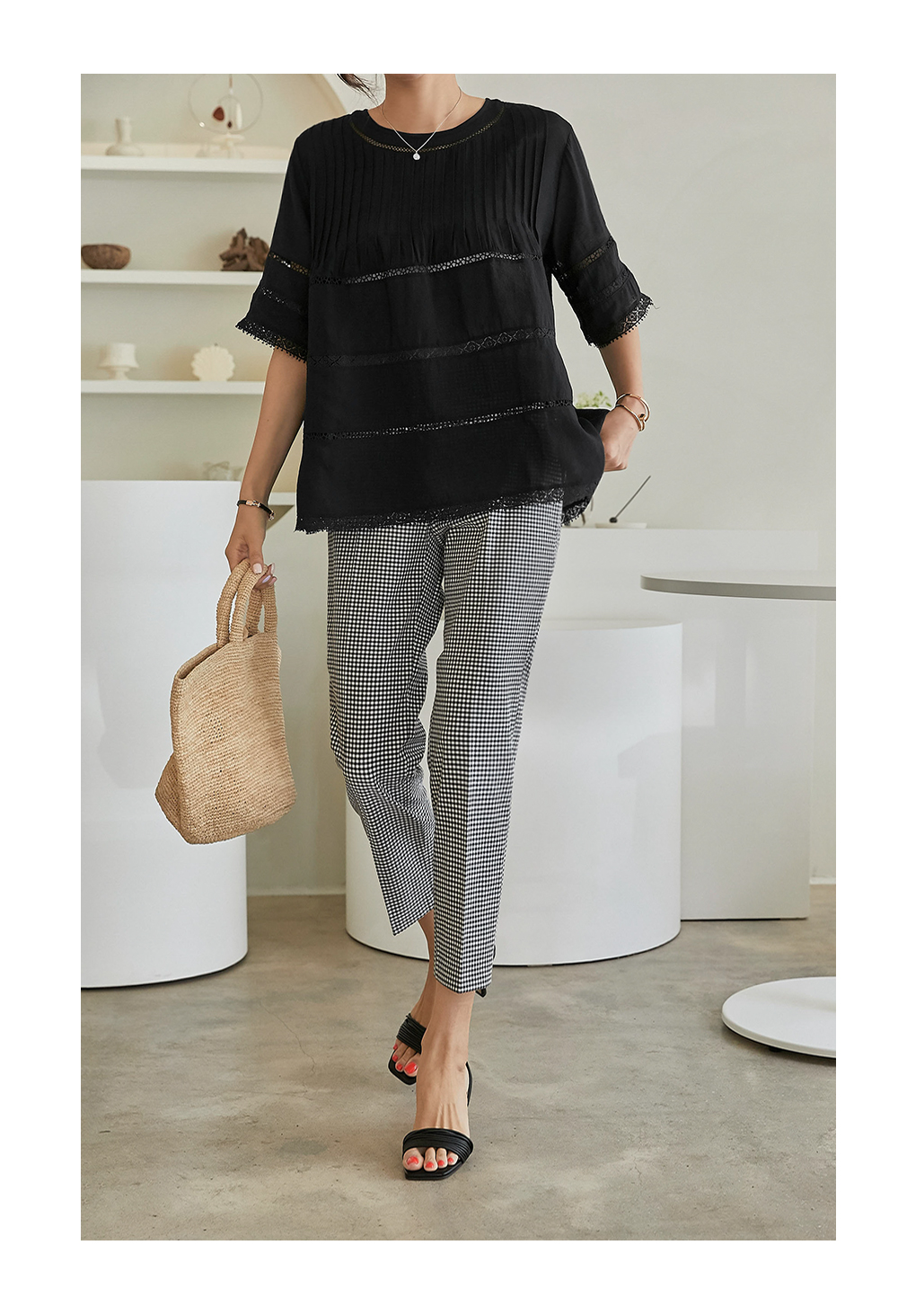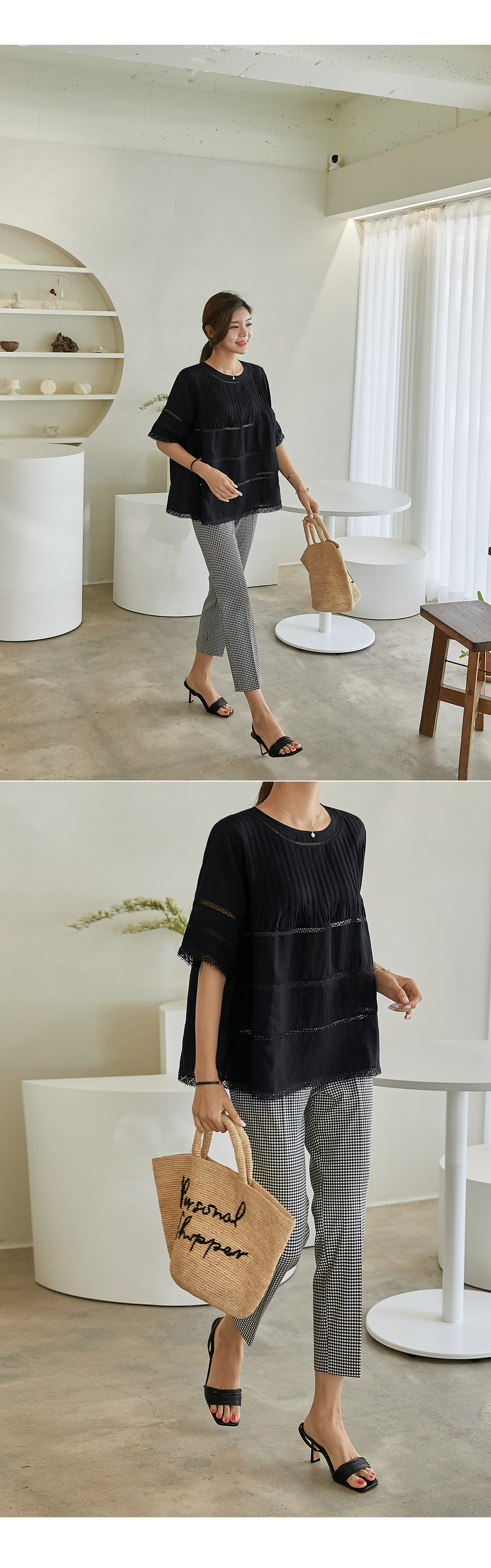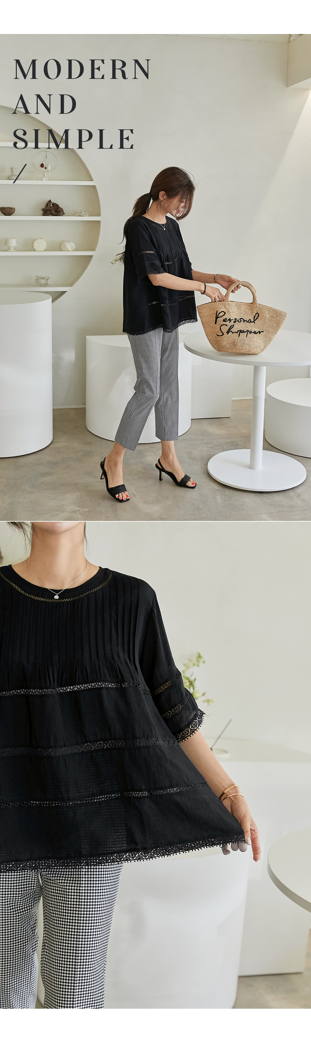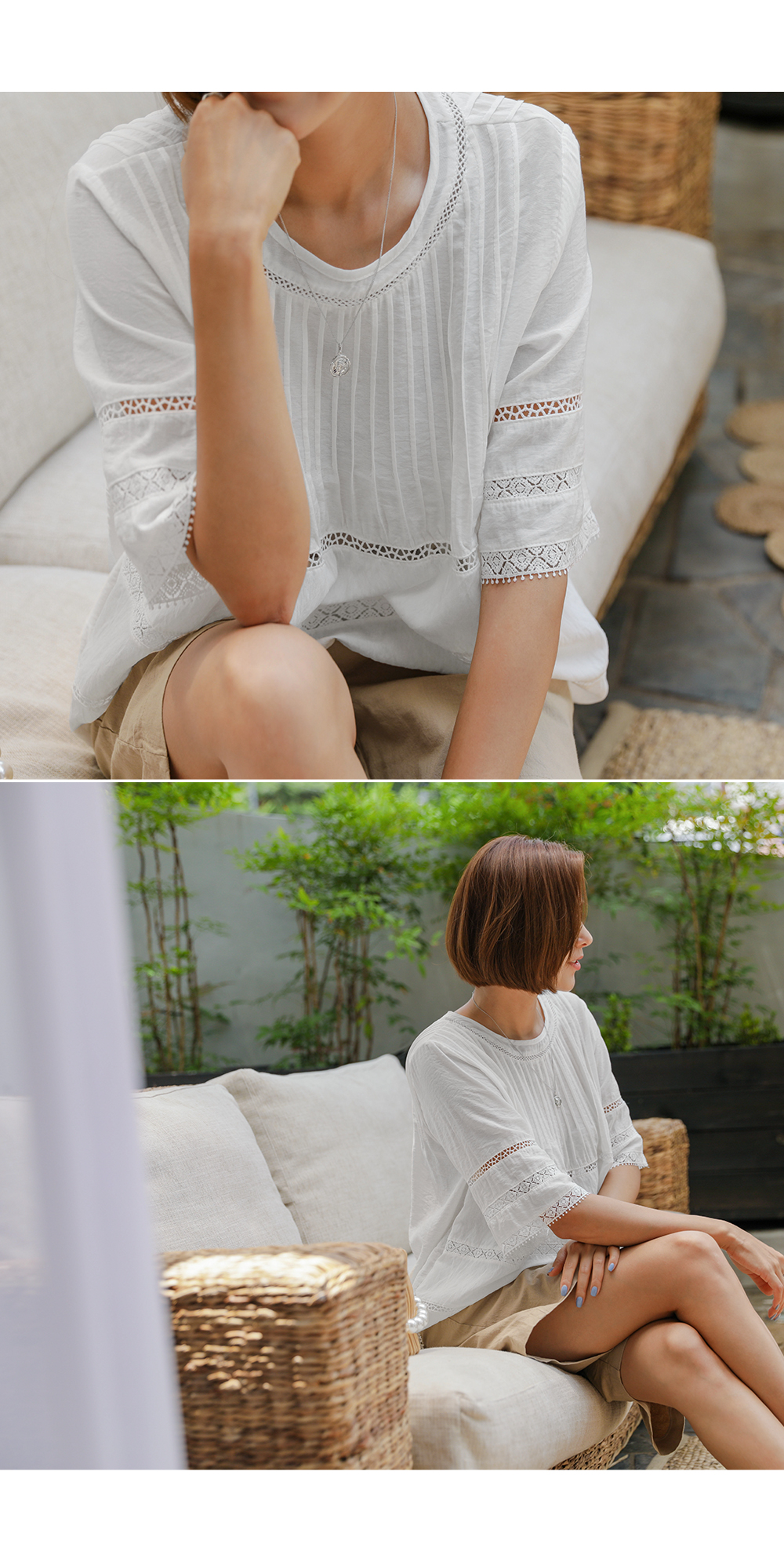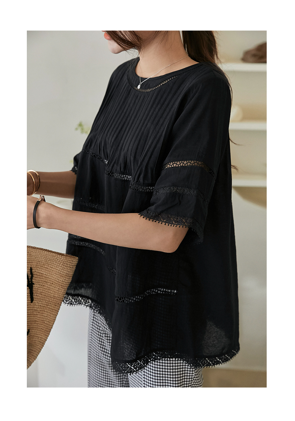 핀턱라인과 레이스의 조화가