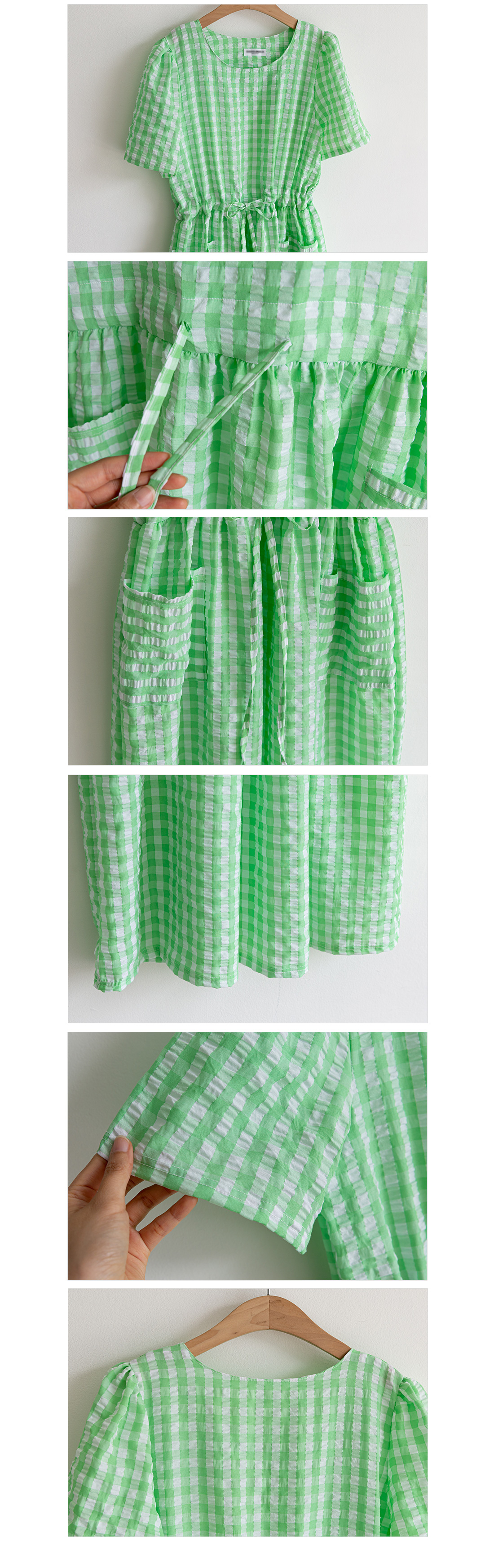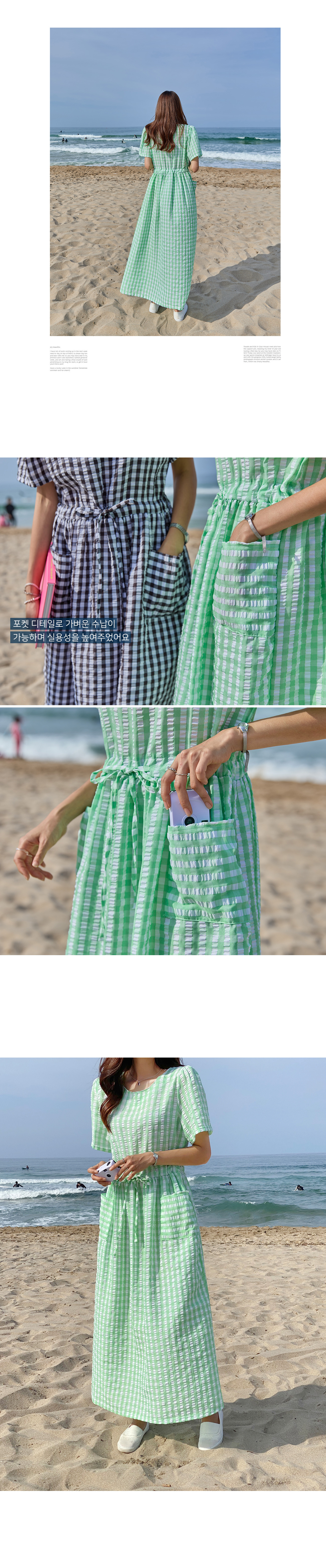 체크와플 스트링 롱 원피스 #38009