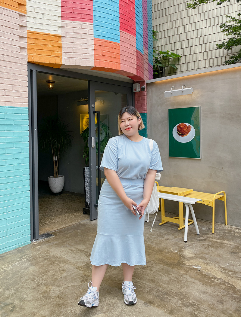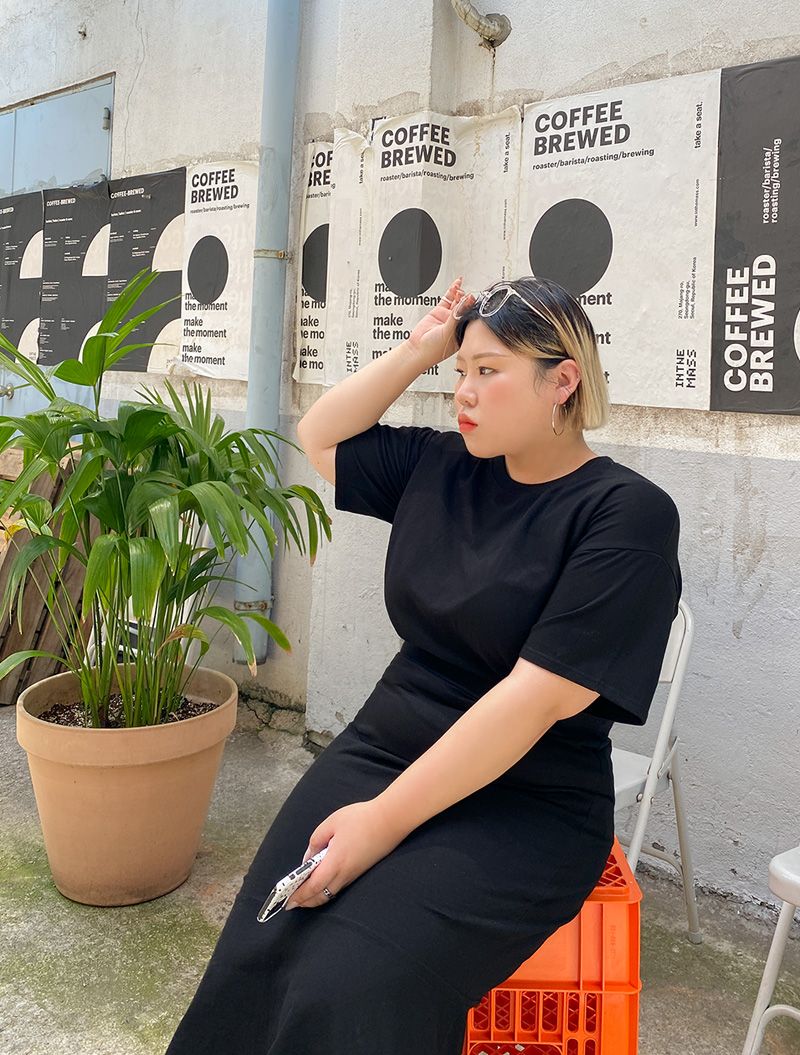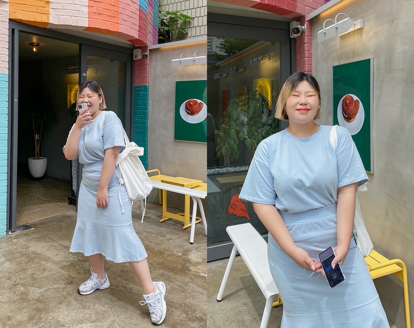 사지통통형으로 팔,다리가 통통하며 허리가 얇은 체형입니다.Hourglass body shape & Relatively plump arms and legs