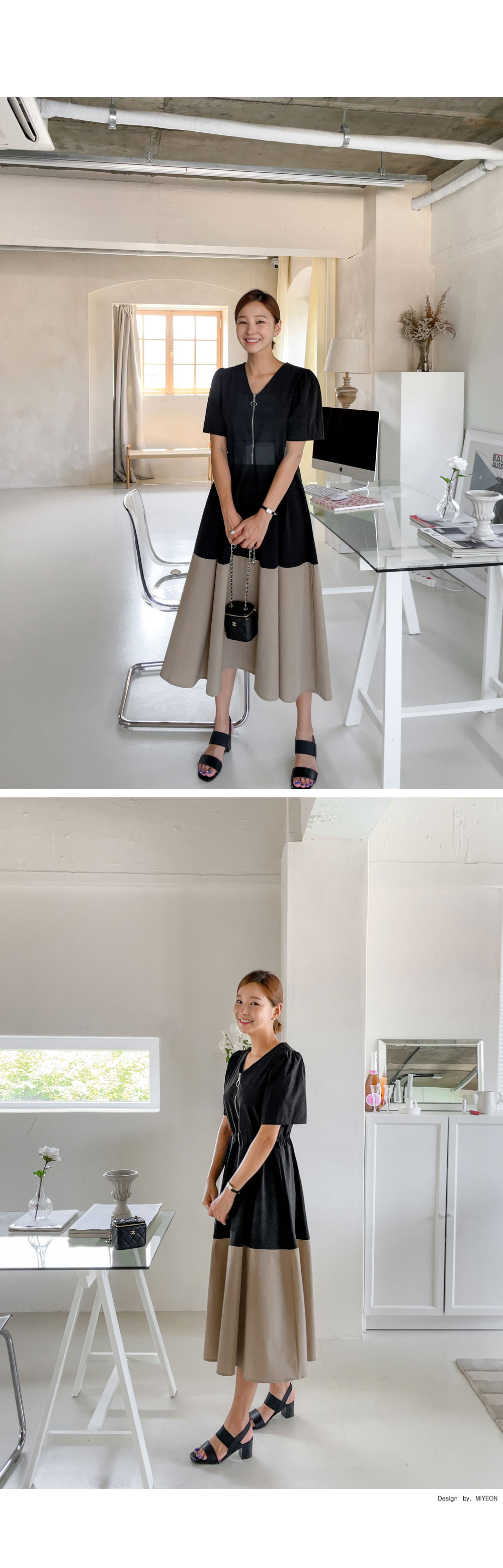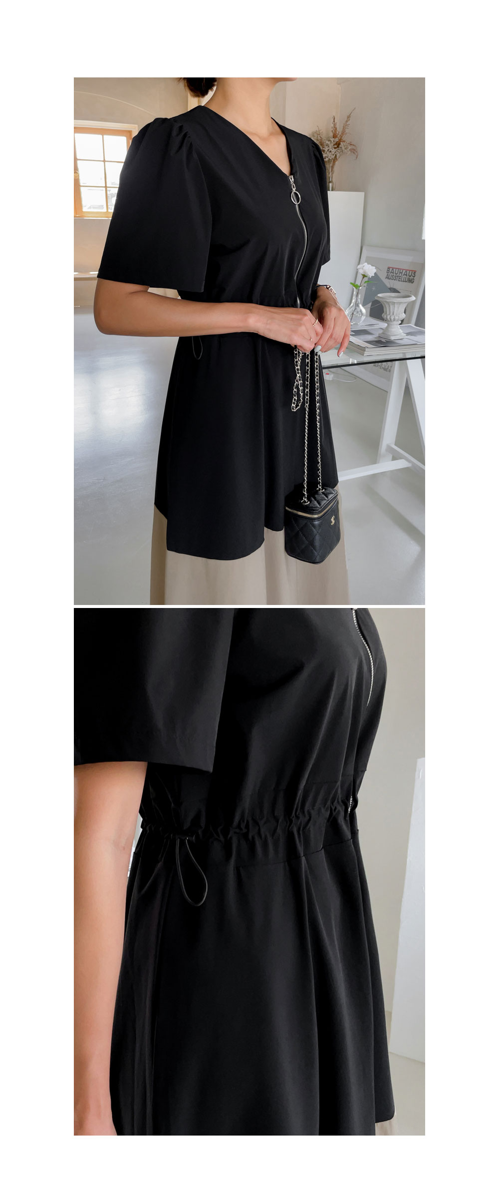 V넥 네크라인에 지퍼 디테일로 밋밋하지 않구요.