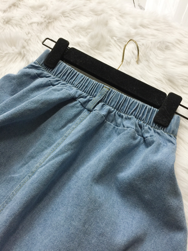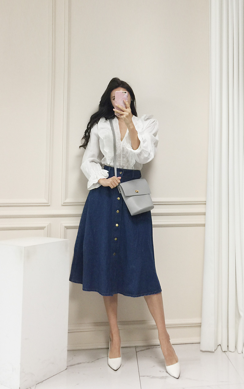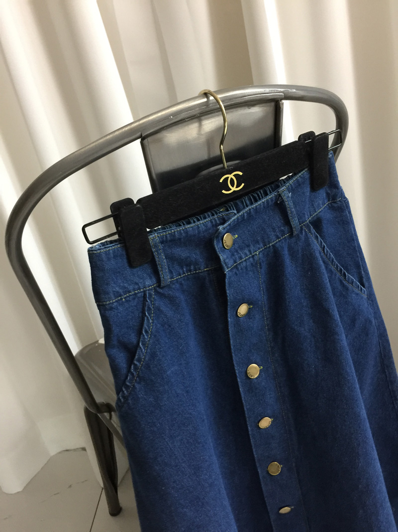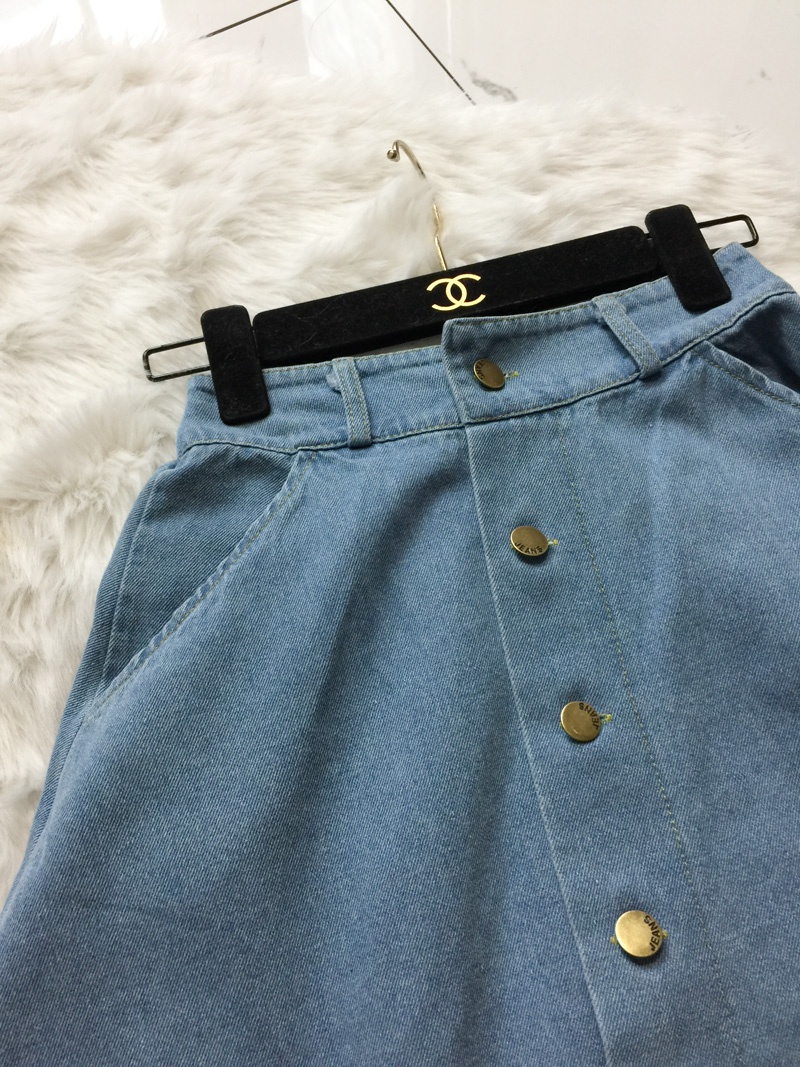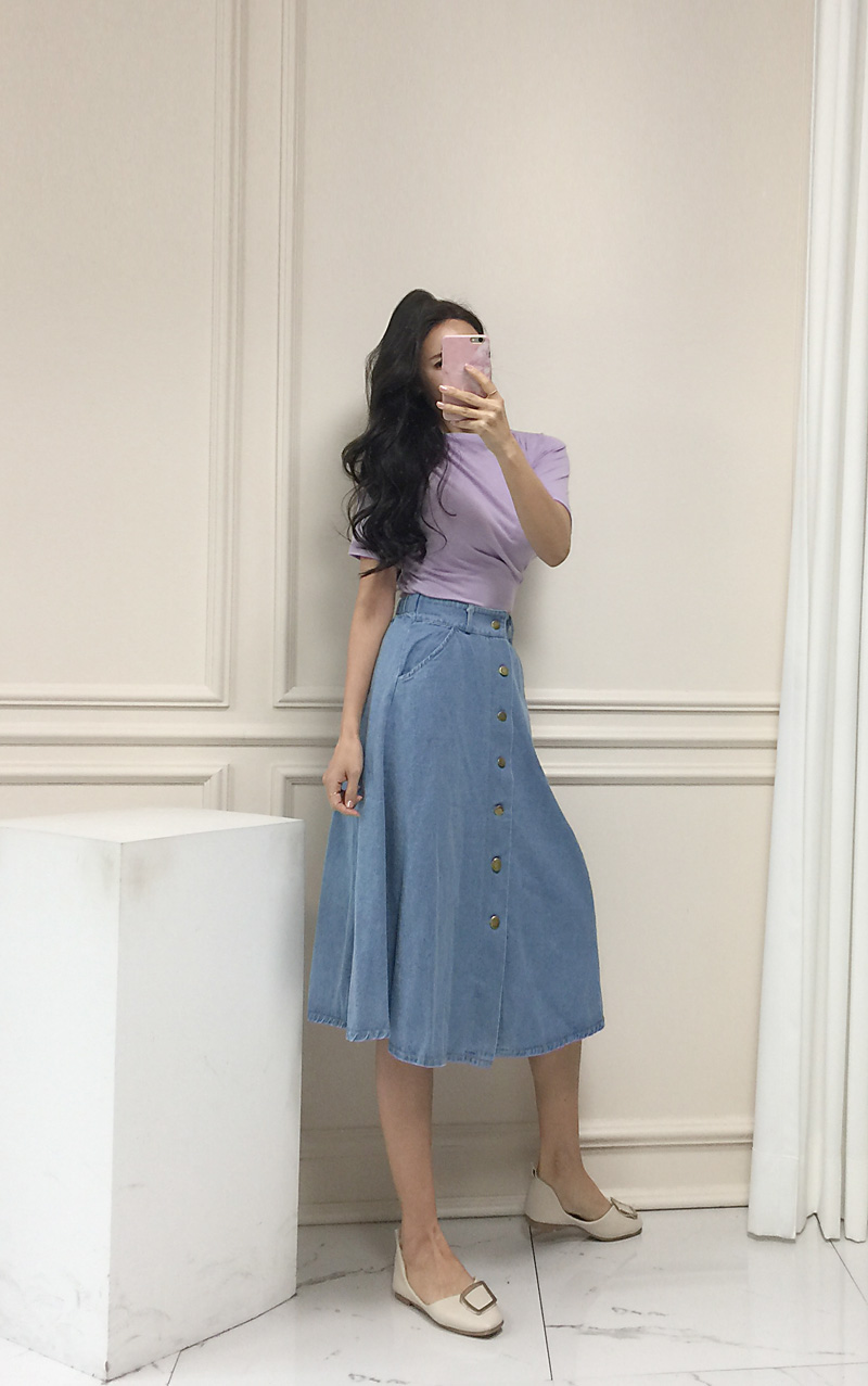 소르비 밴딩 버튼 데님 플레어 롱 스커트