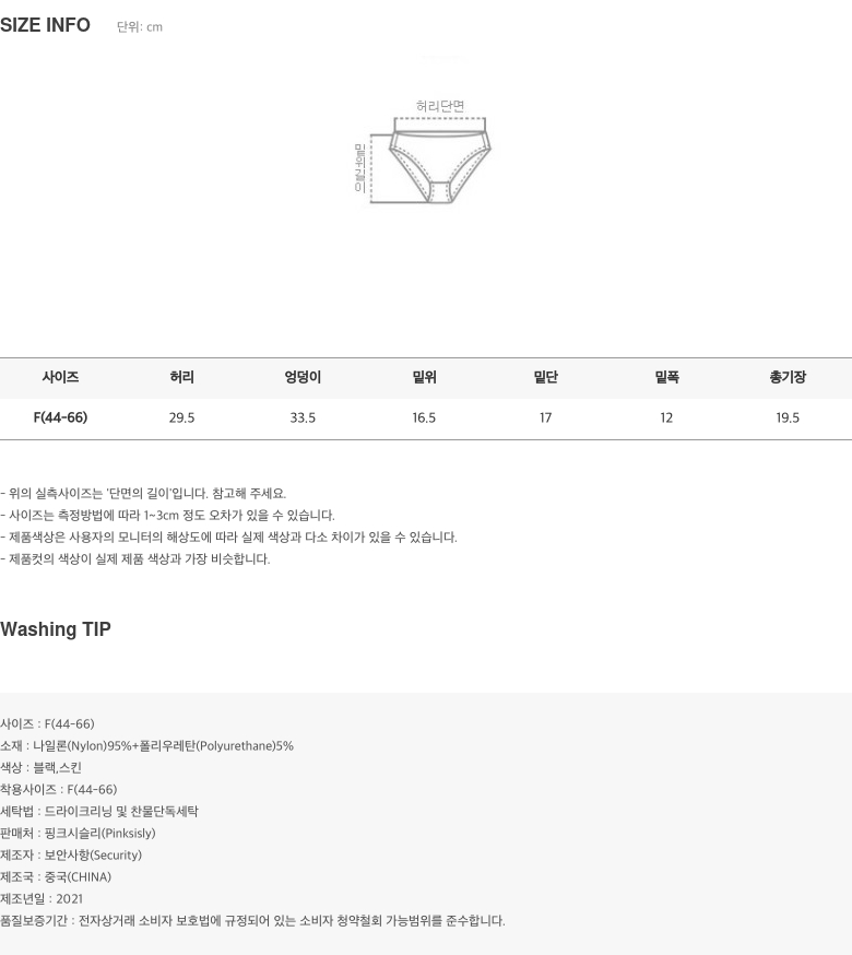 | 비침 | 밝은 컬러의 경우 비침이 있을 수 있습니다 |