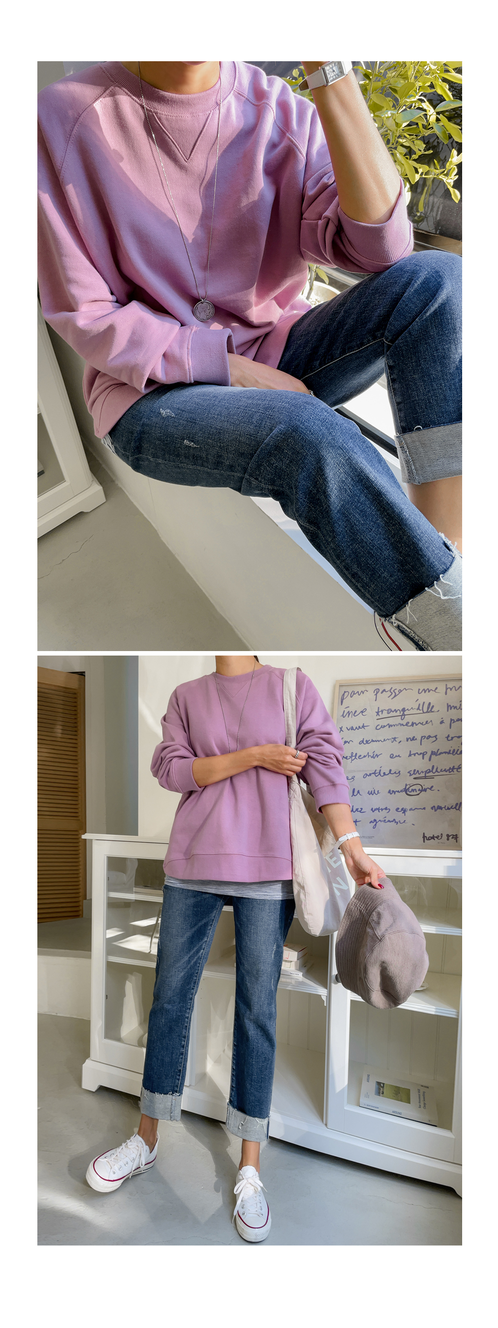 여유있게 일자로 떨어지는 핏감으로
