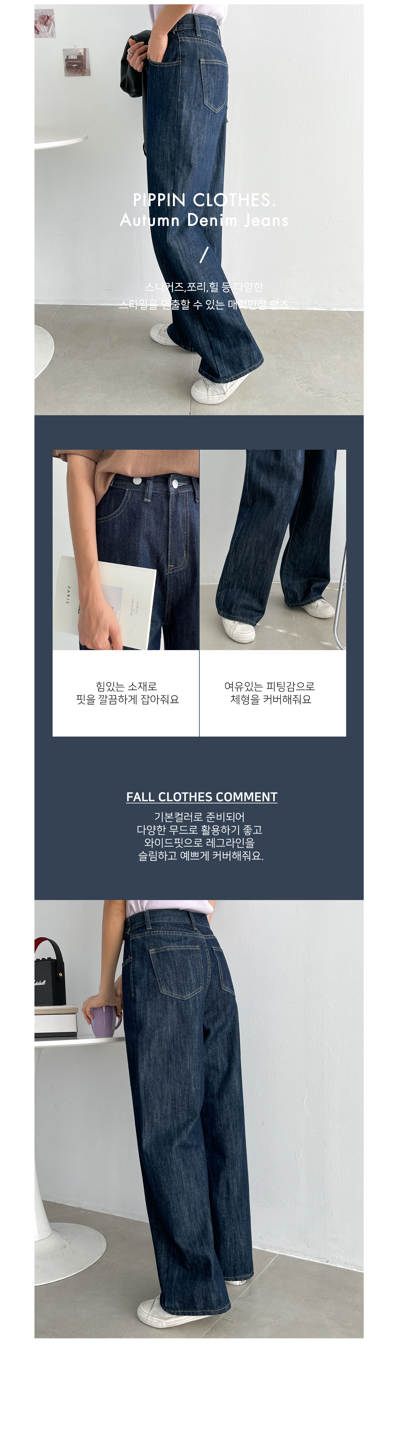 와이드한 핏으로 다리라인을 커버해주고 슬림하게,