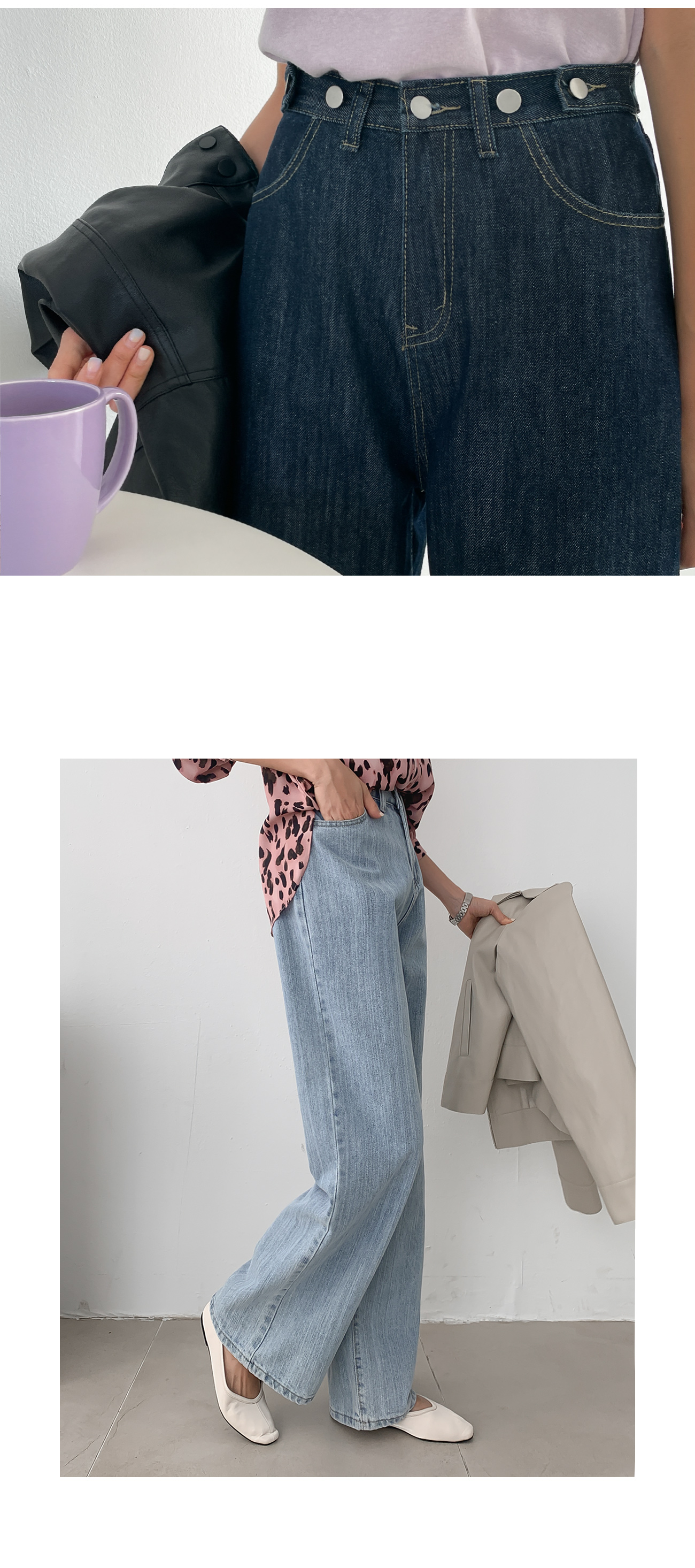 사이드버튼 와이드 데님 팬츠 #79285
