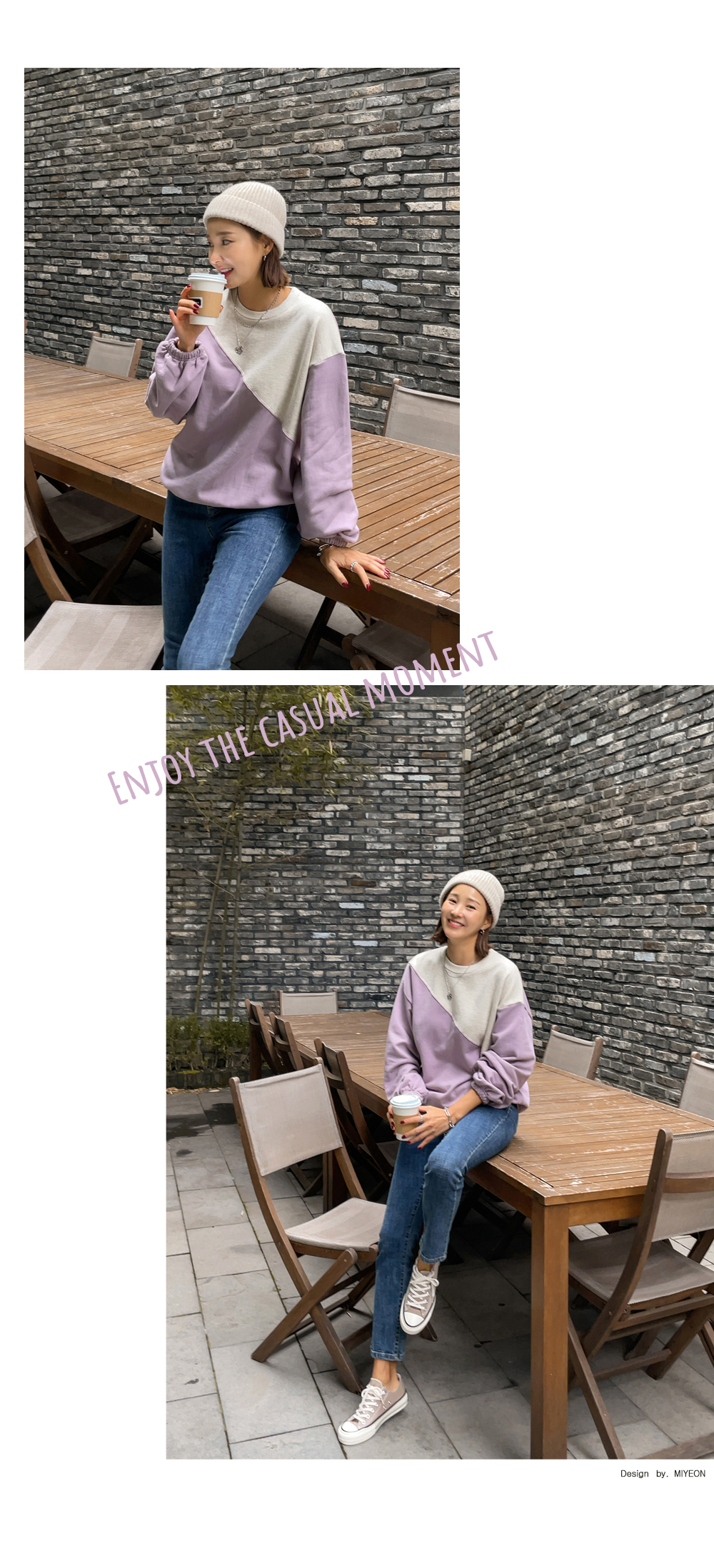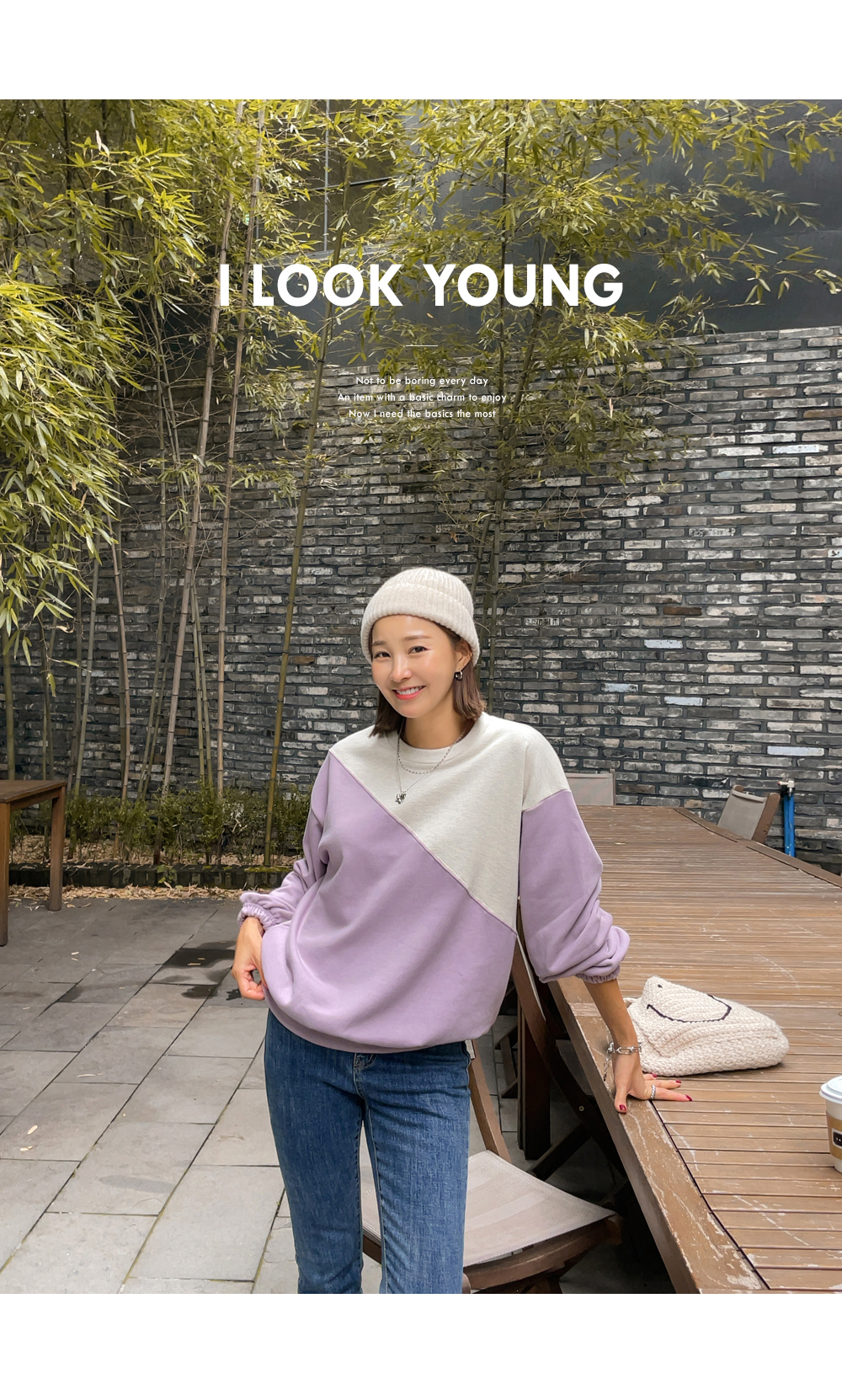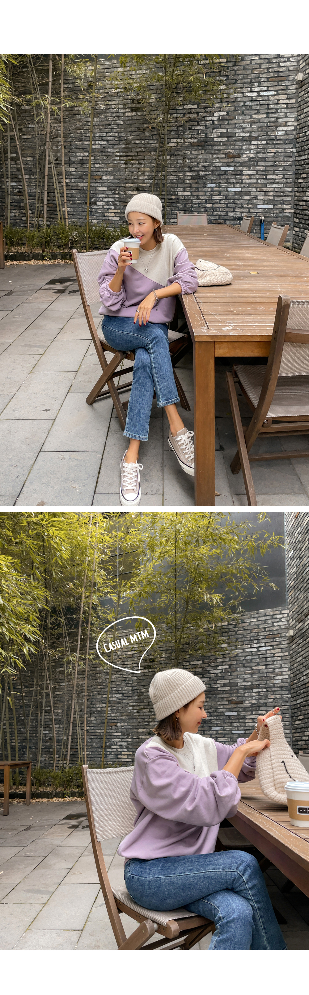 은은한 배색 디자인이 포인트 되는 맨투맨이에요.