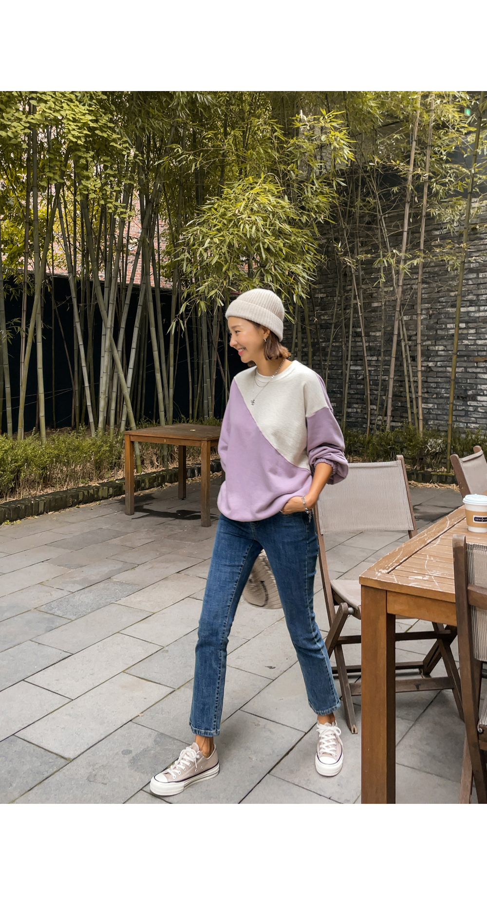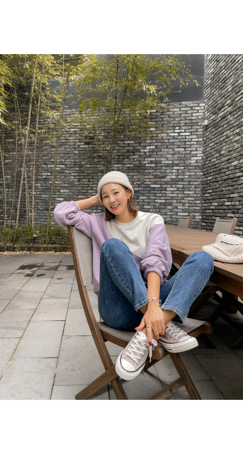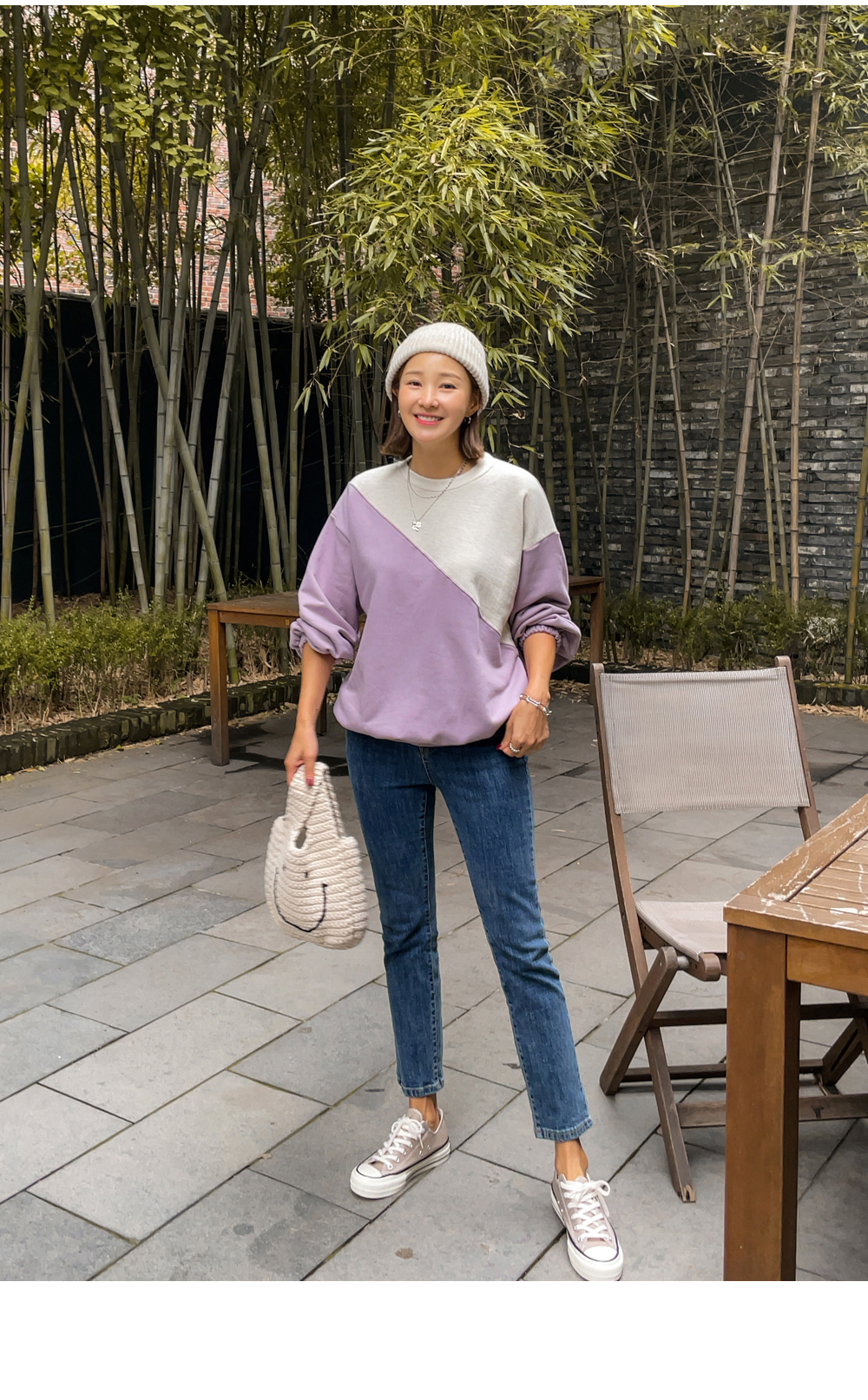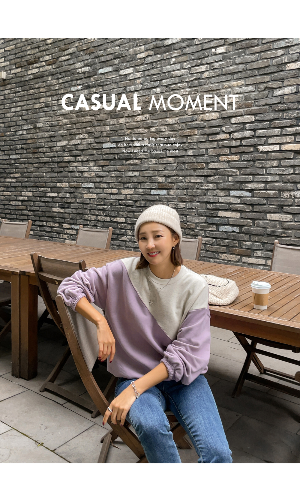 은은한 배색 디자인이 포인트 되는 맨투맨이에요.