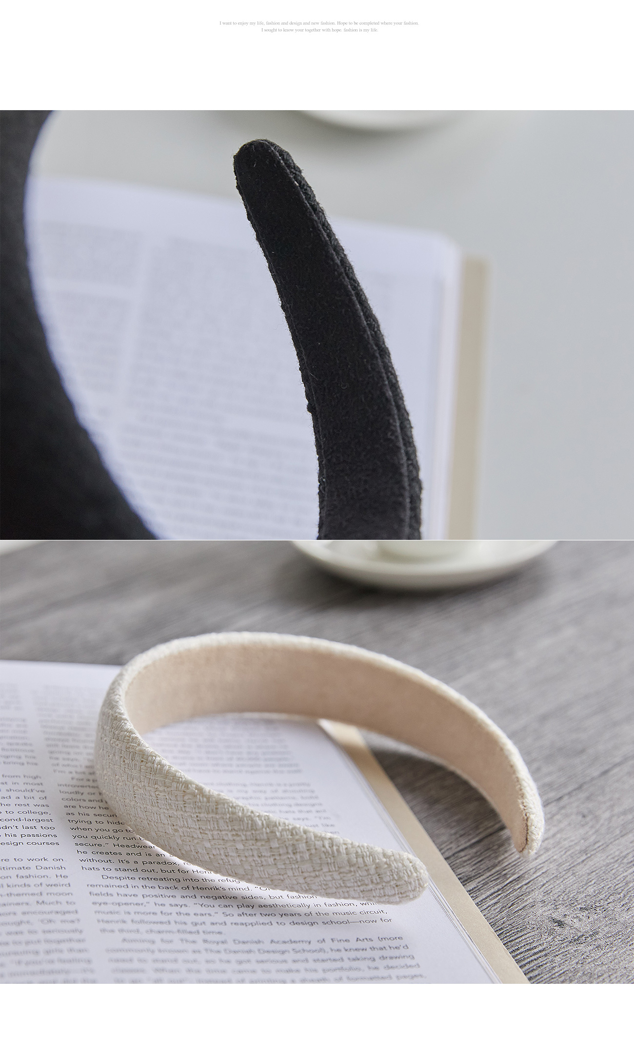 무지 디자인이지만 소재로 포인트 준 머리띠에요