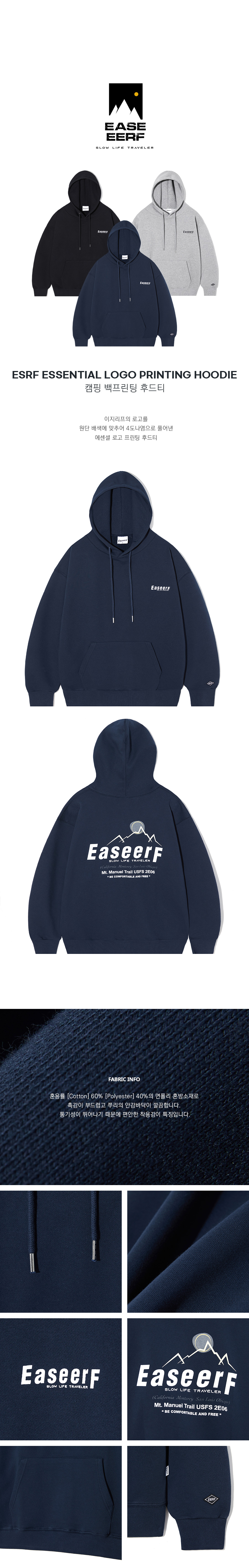 ESRF007*ESRF Essential logo Printing Hoodie Navy