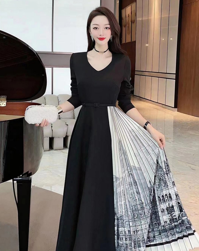 베네치아 벨트 플리츠 롱원피스 2XL까지