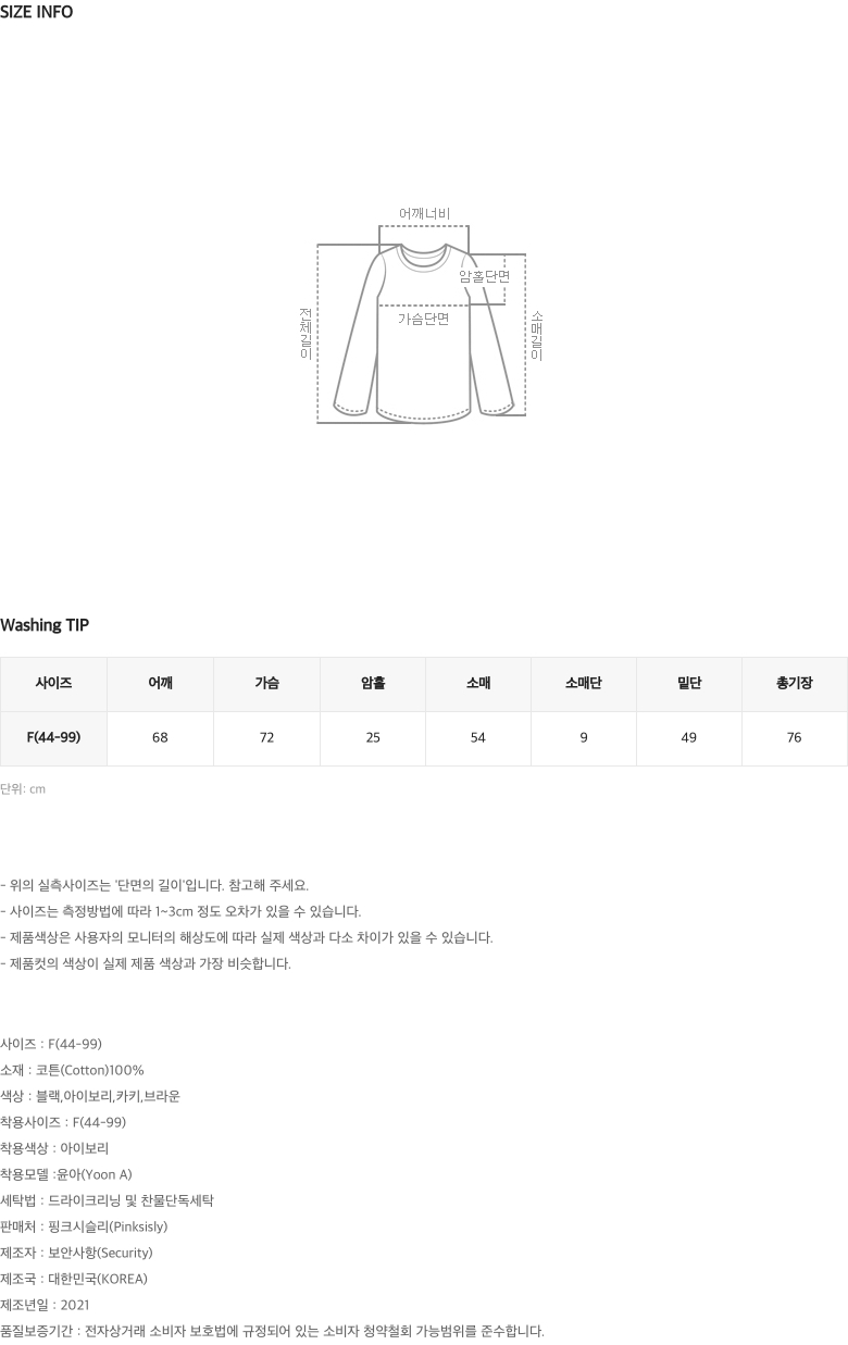 | 두께감 | 겨울시즌 입을 수 있는 두꺼운 두께감입니다 |