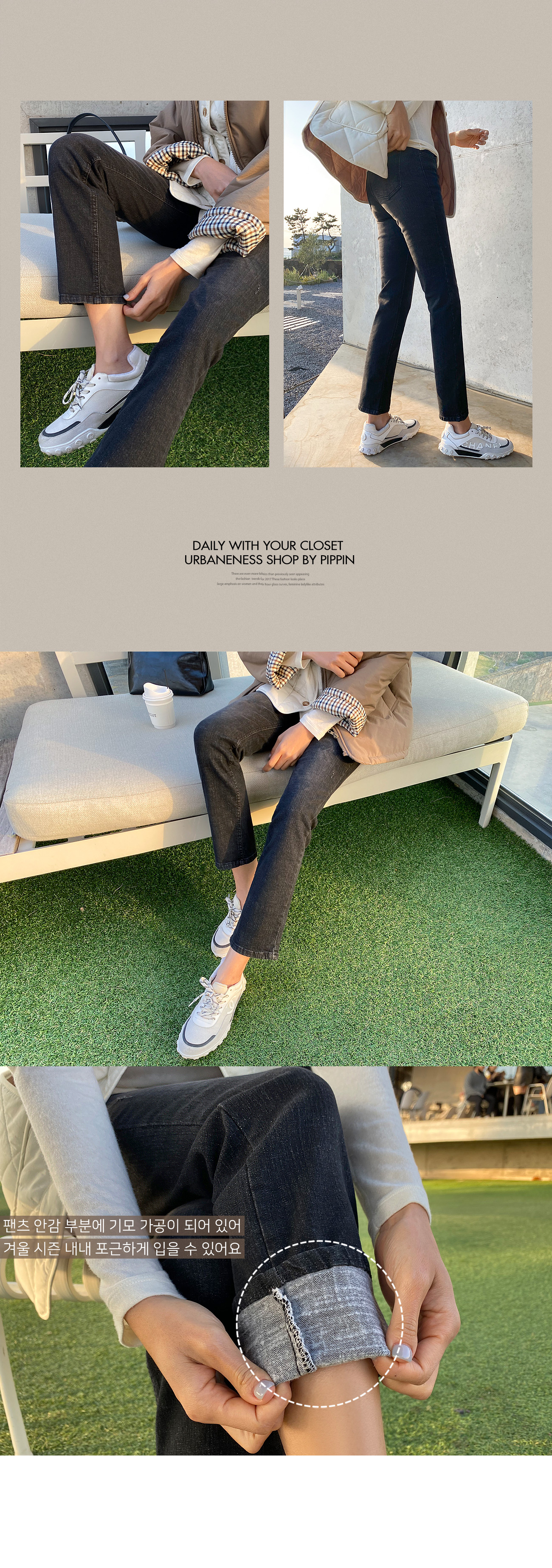 팬츠 안쪽엔 보송하게 기모 처리가 되어 있어 보온성을 높여주고