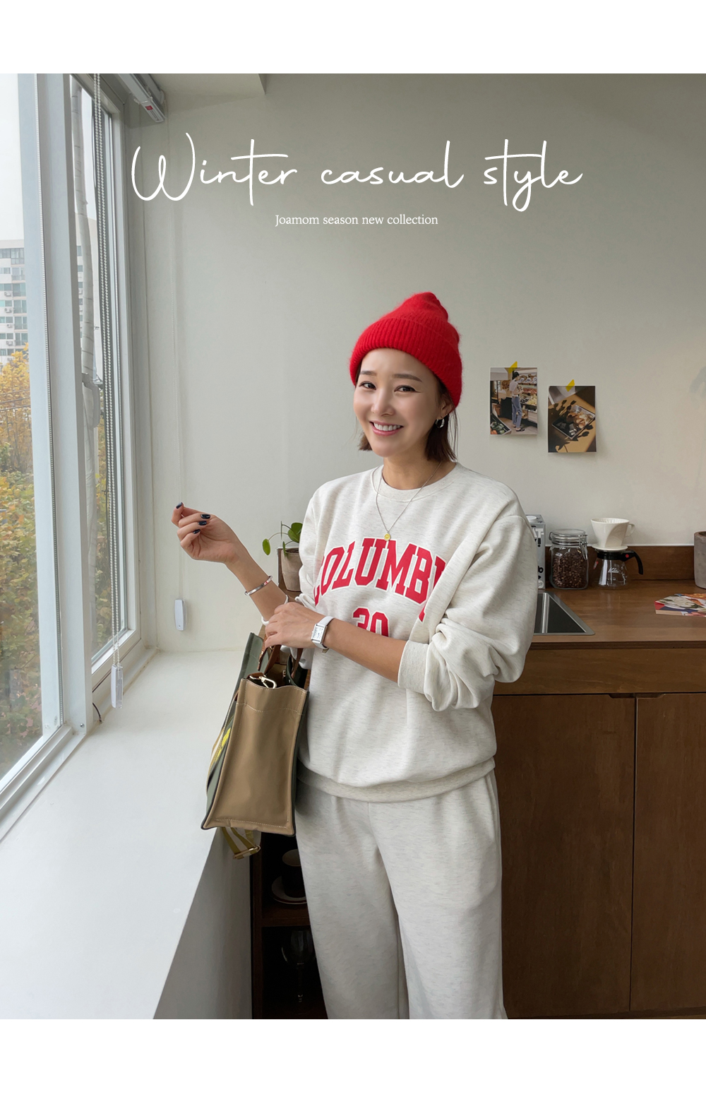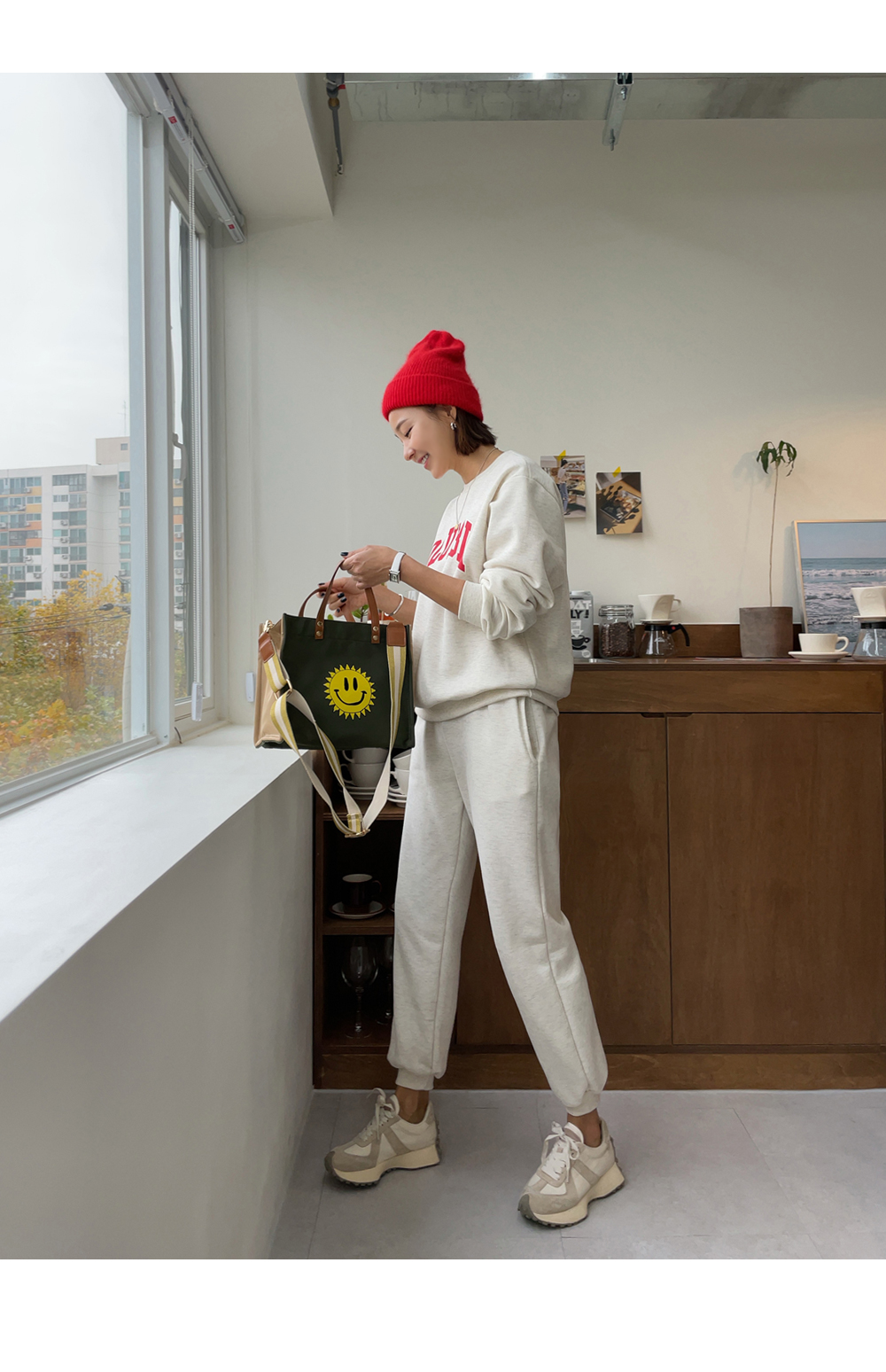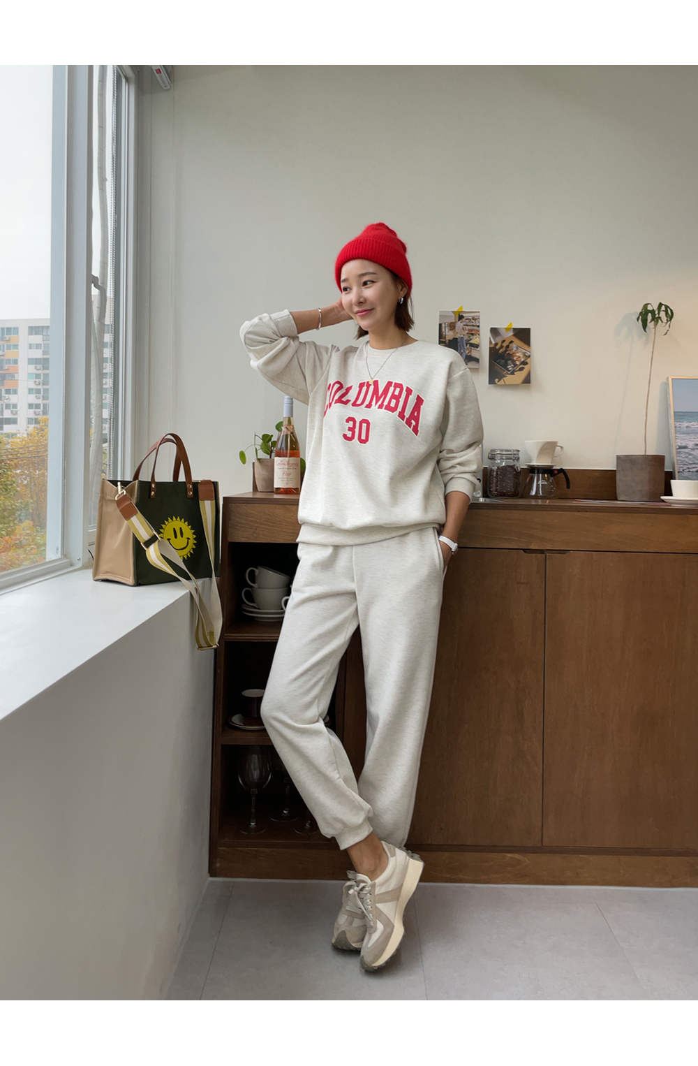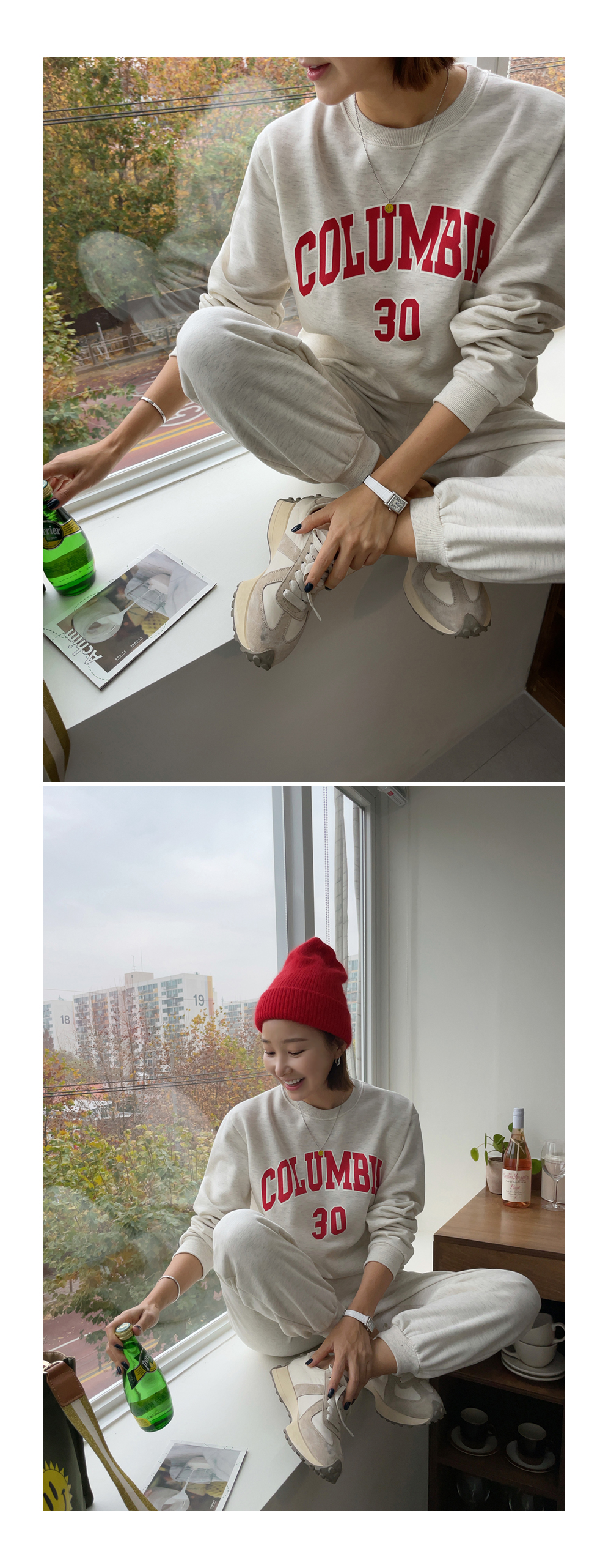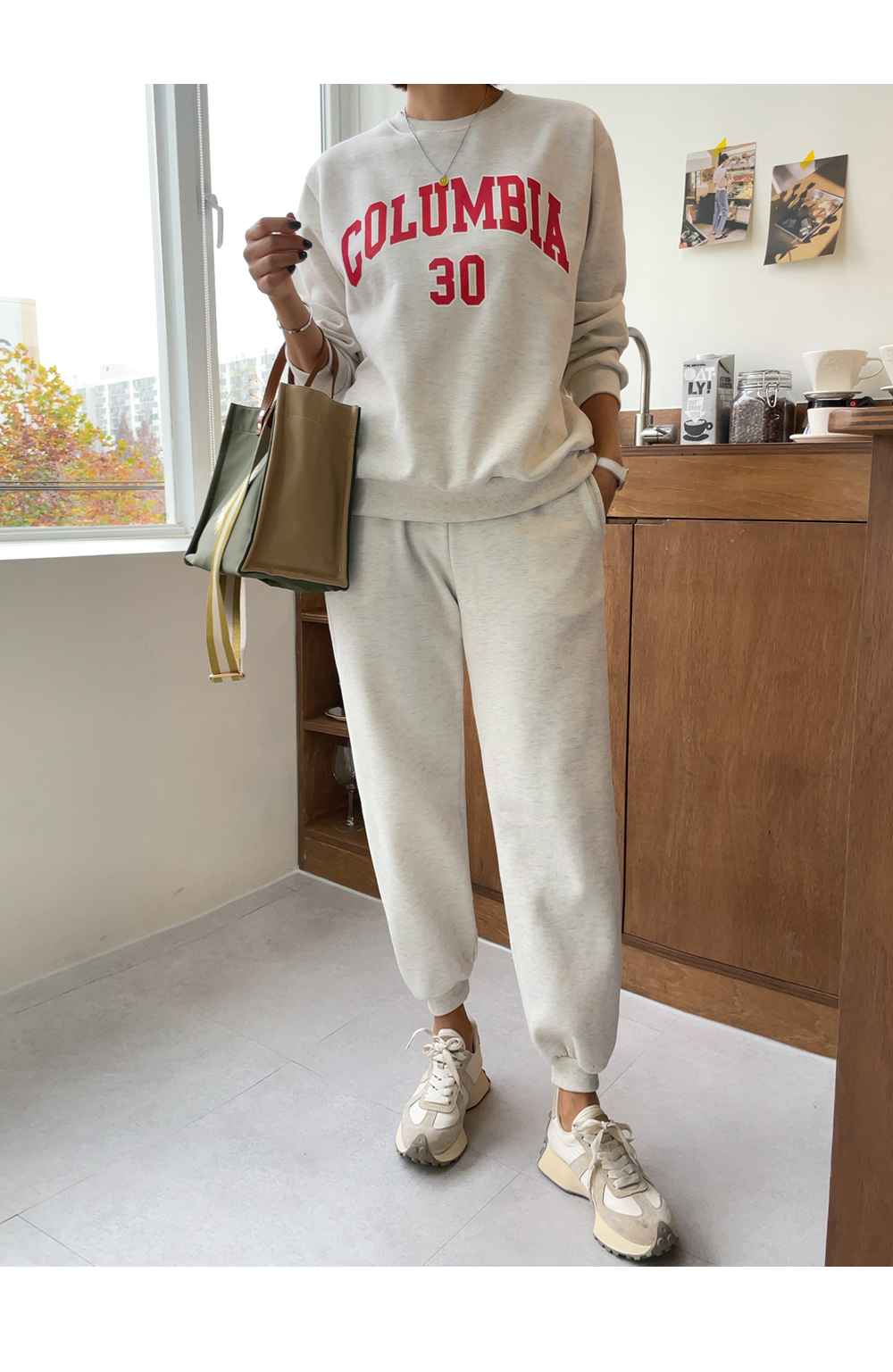 깔끔하게 떨어지는 조거 팬츠가 세트로 구성되었구요.
