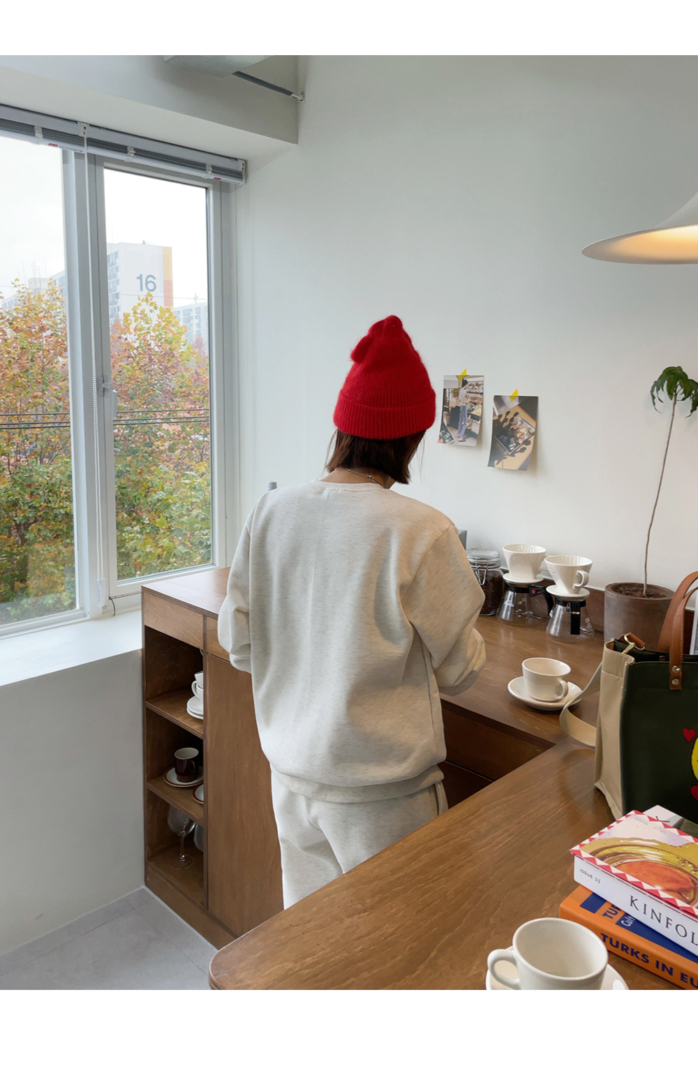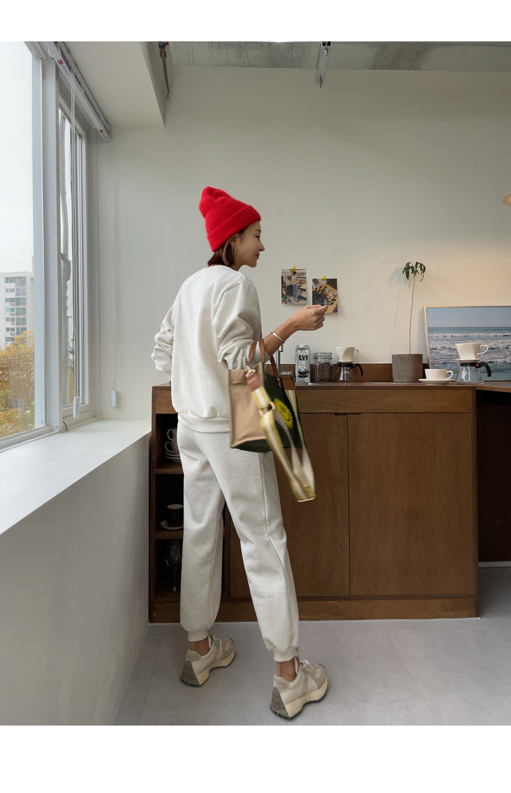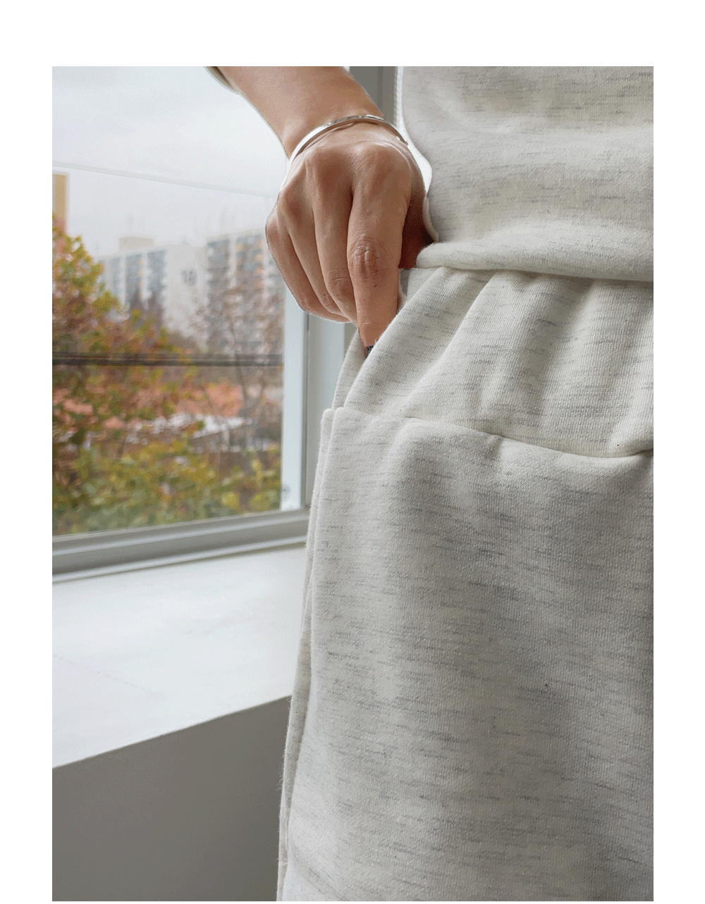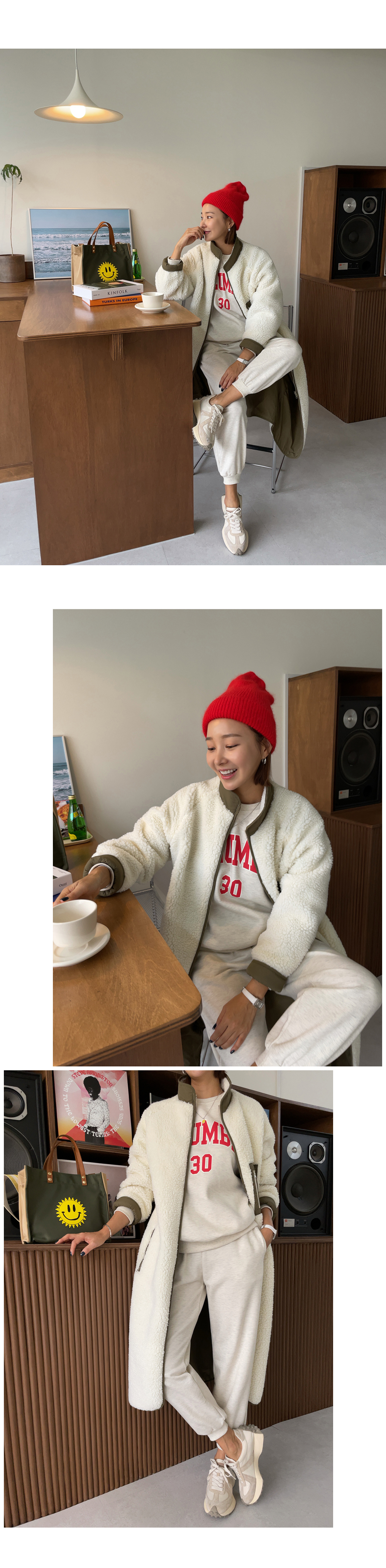 깔끔하게 떨어지는 조거 팬츠가 세트로 구성되었구요.