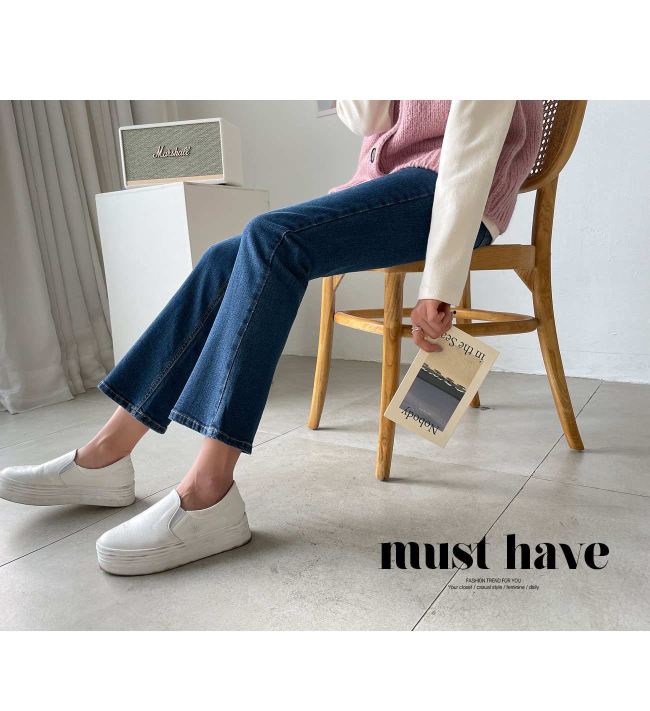 슬림하게 떨어지는 부츠컷 라인이