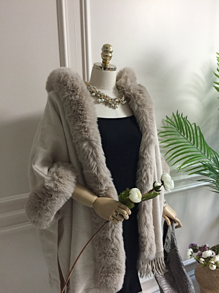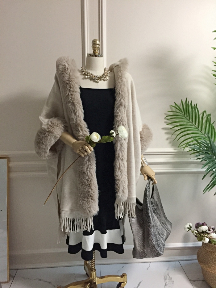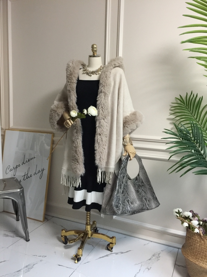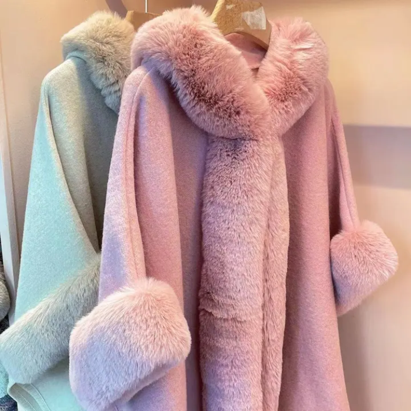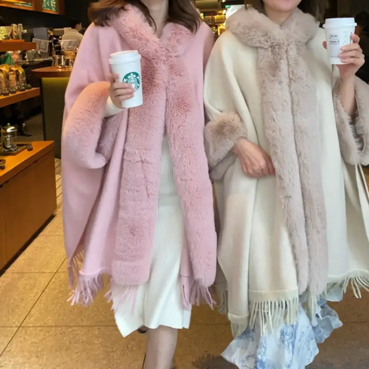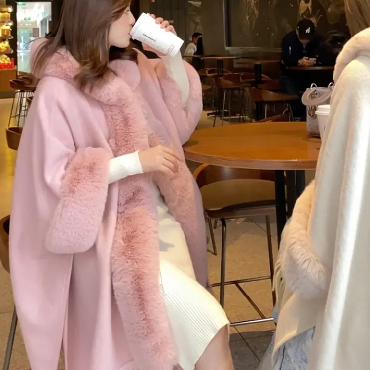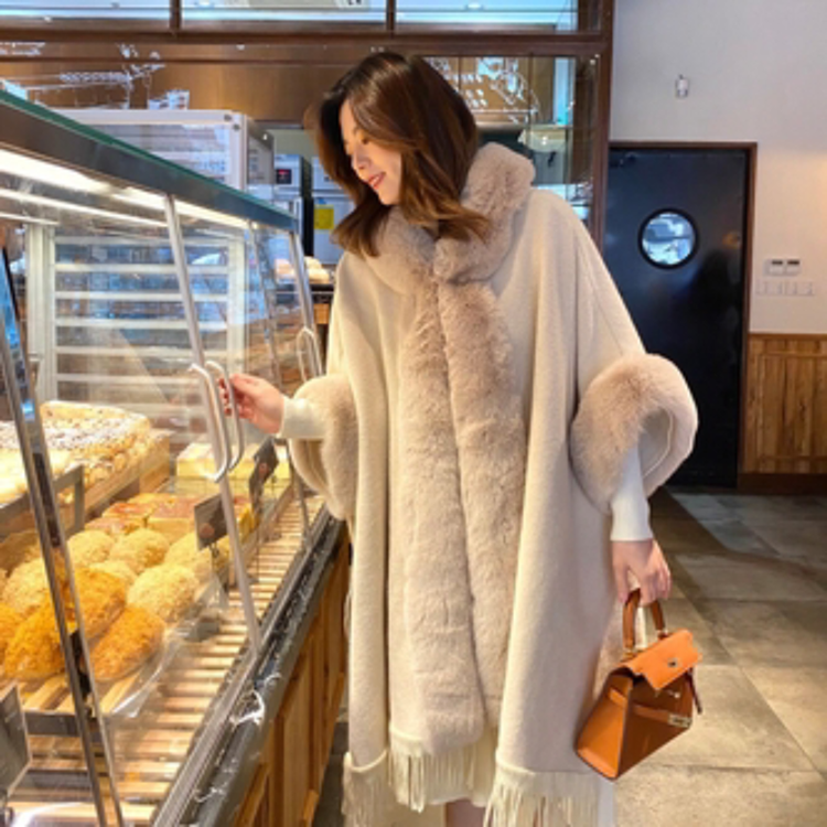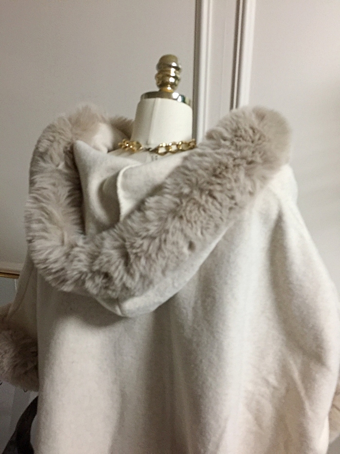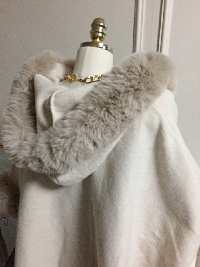 아드리마 울모직 퍼 케이프 코트