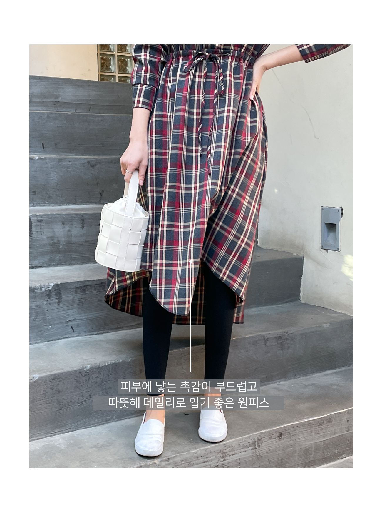 데일리로 입기 좋은 스타일의 체크 원피스입니다.