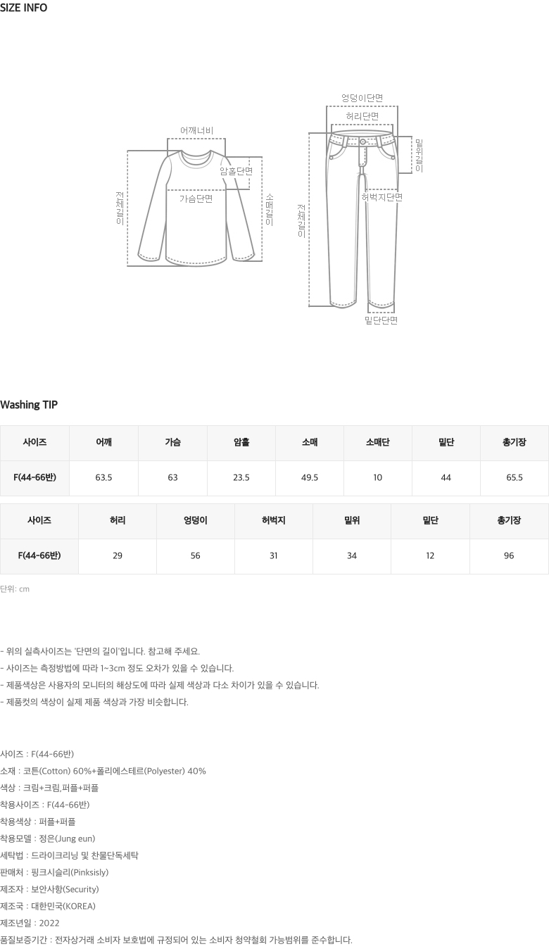 | 비침 | 밝은 컬러의 경우, 비침이 있을 수 있습니다 |