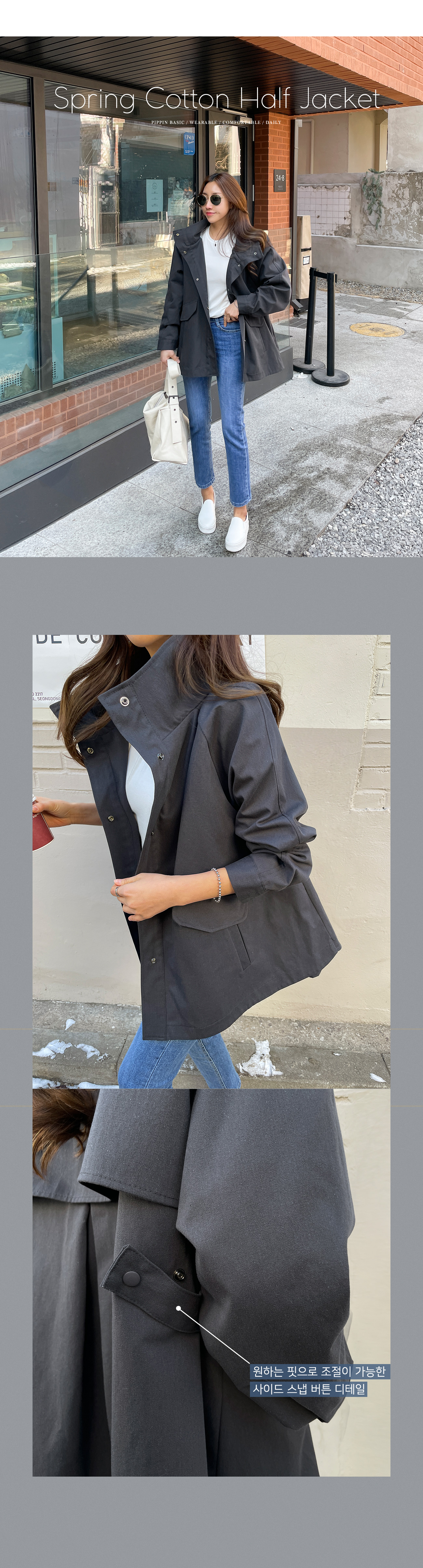 스냅 버튼으로 탈착용이 간편하고 깔끔한 핏을 유지해 줘요.