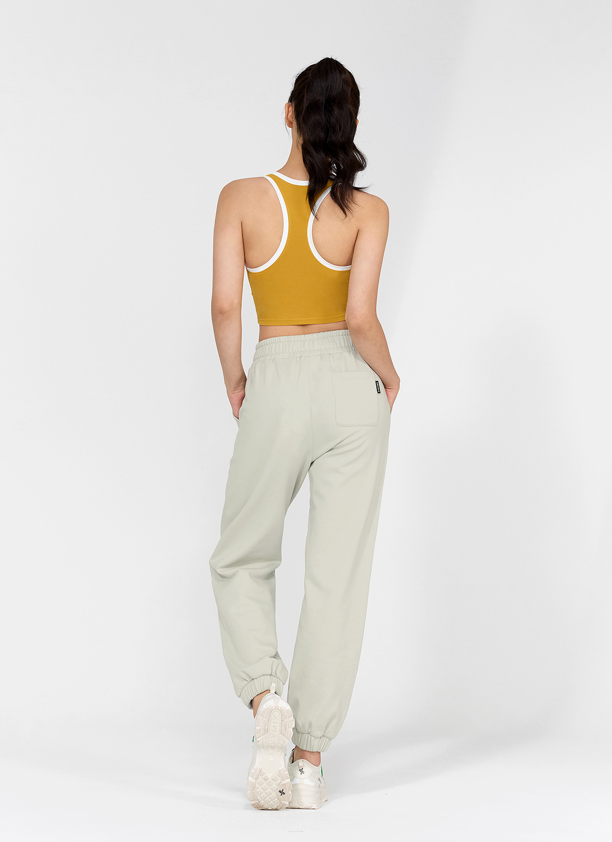 골반 위로 떨어지는 크롭 기장에 체형에 편안하게 밀착하는 입체 패턴으로