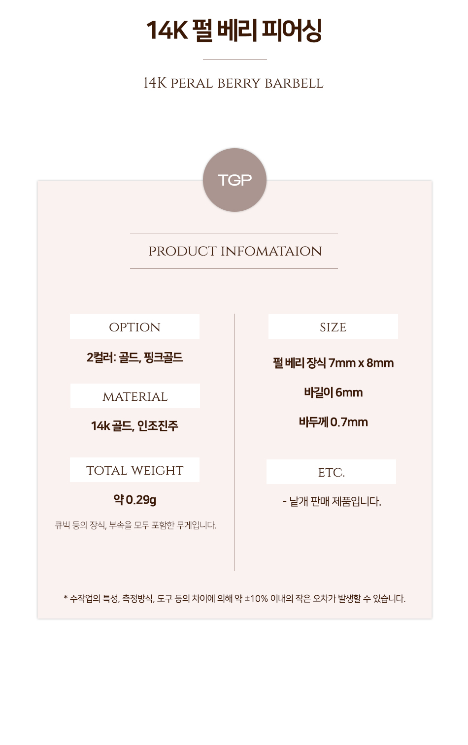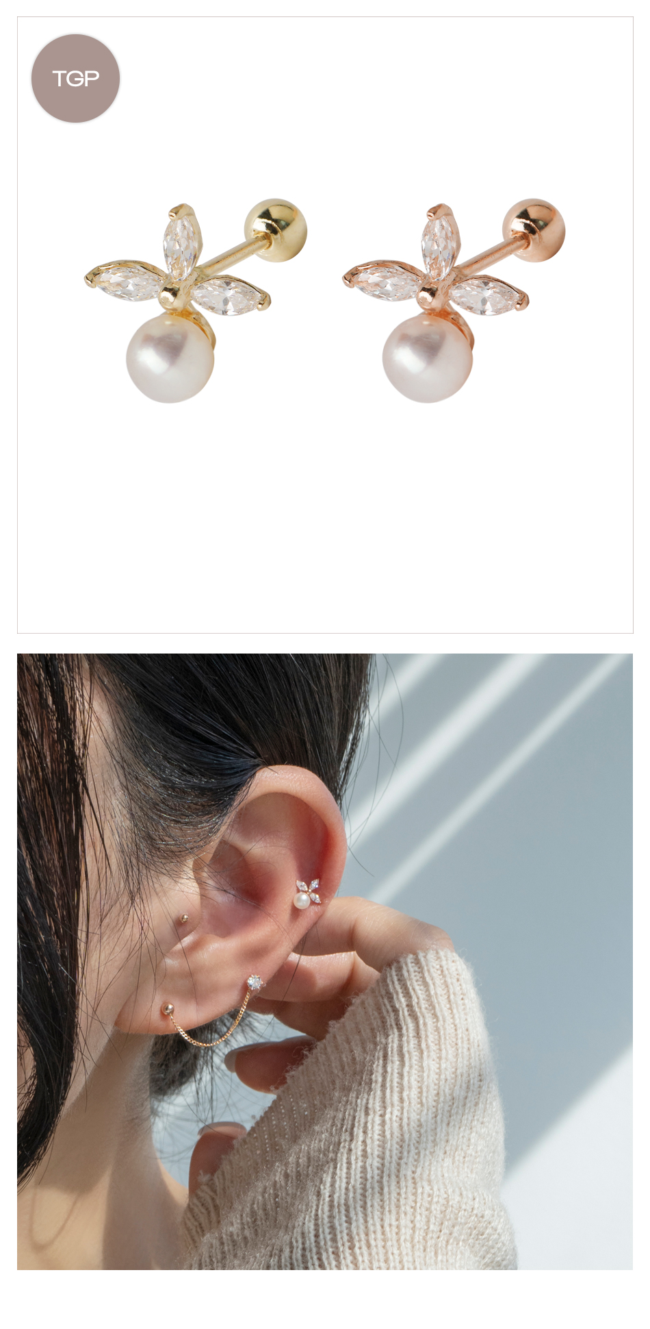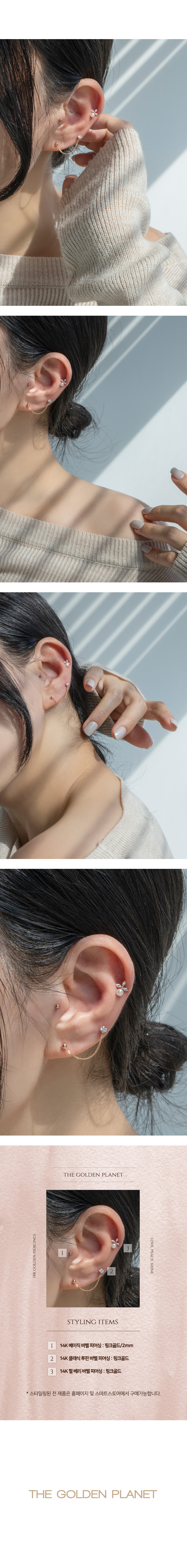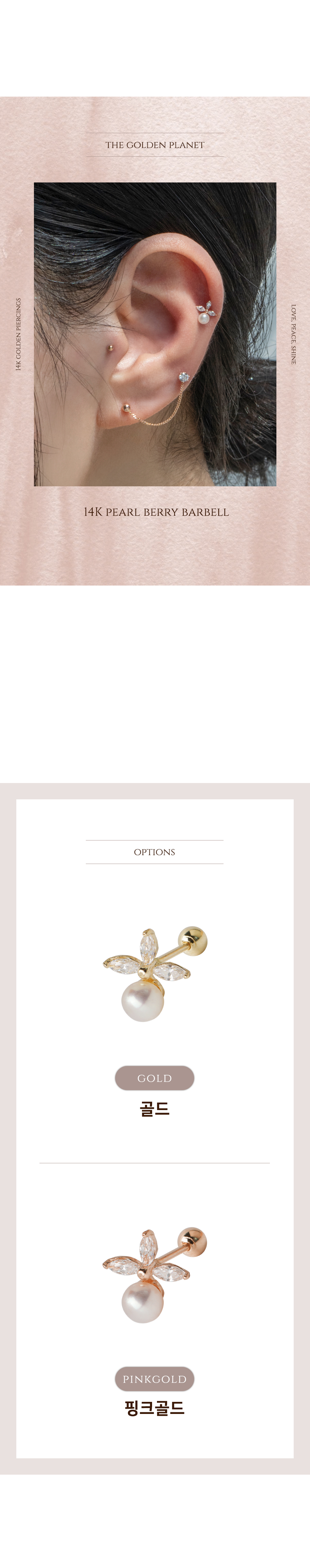14k 미니 펄 베리 금 피어싱