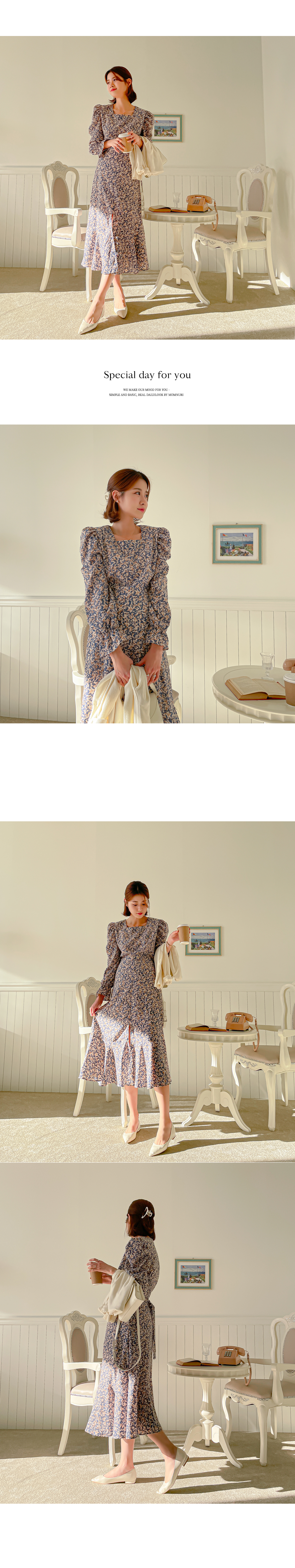 컬러감이 화사한 플라워 패턴의 원피스를