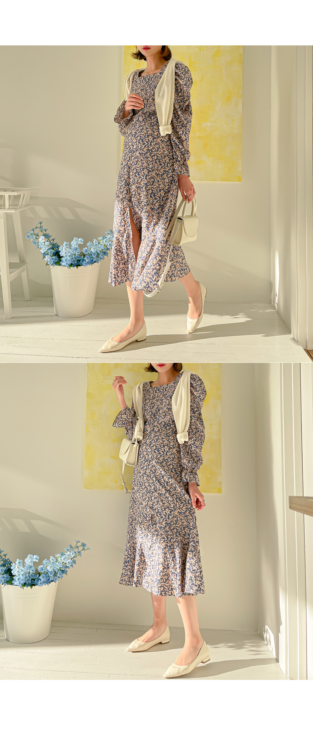 퍼프 소매가 더해져 발랄한 분위기까지