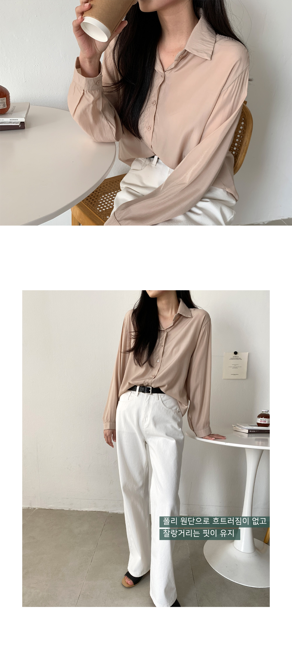 폴리원단으로 제단하여 찰랑거리는 핏이