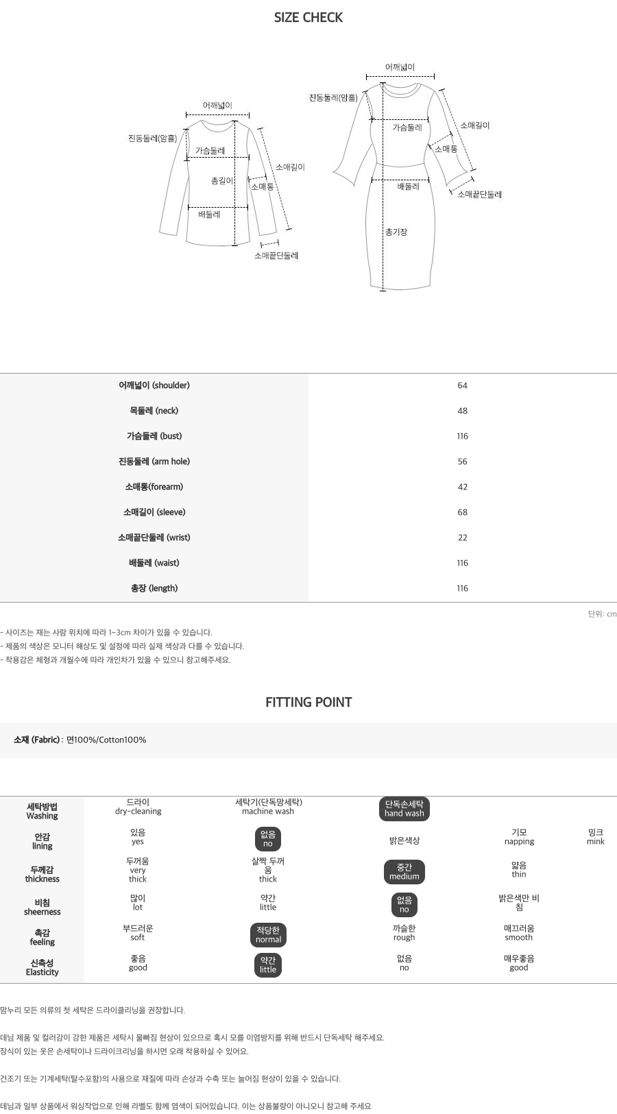 자세한 사이즈는 하단의 사이즈 표를 참고해주세요