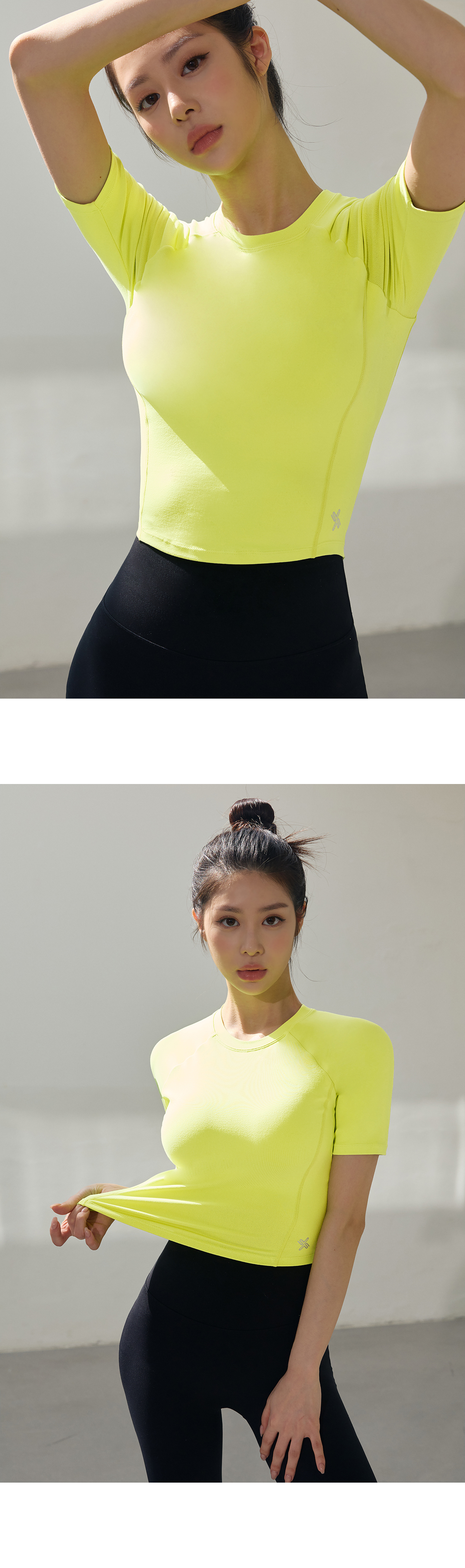 별도의 이너 없이 입을 수 있는 크롭 숏슬리브예요.