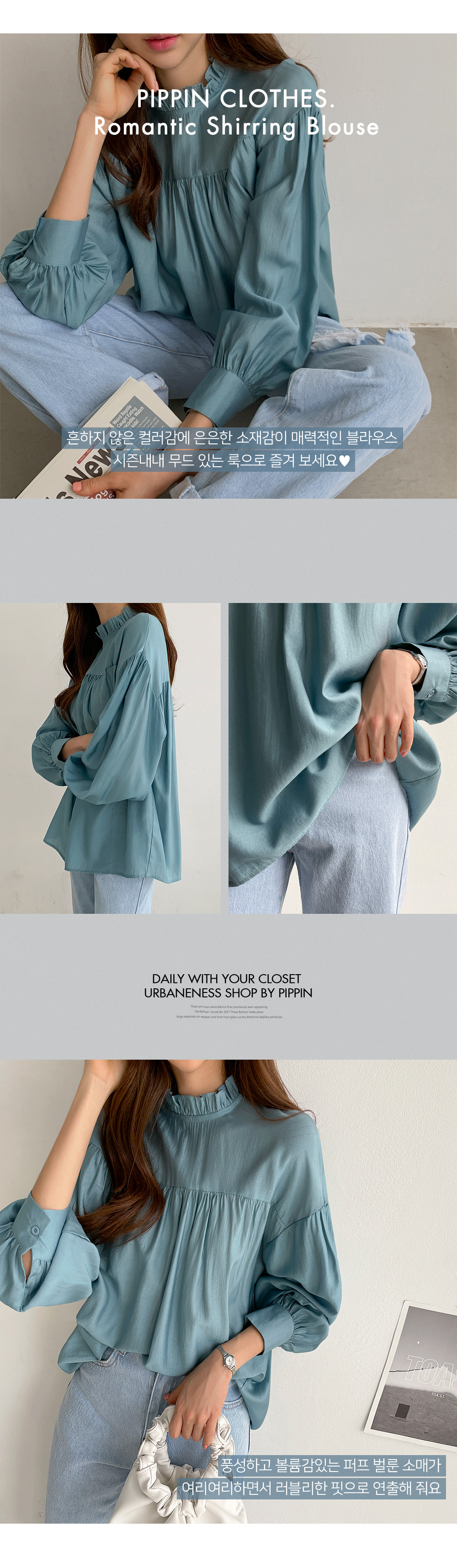 벌룬 셔링 블라우스 #49179