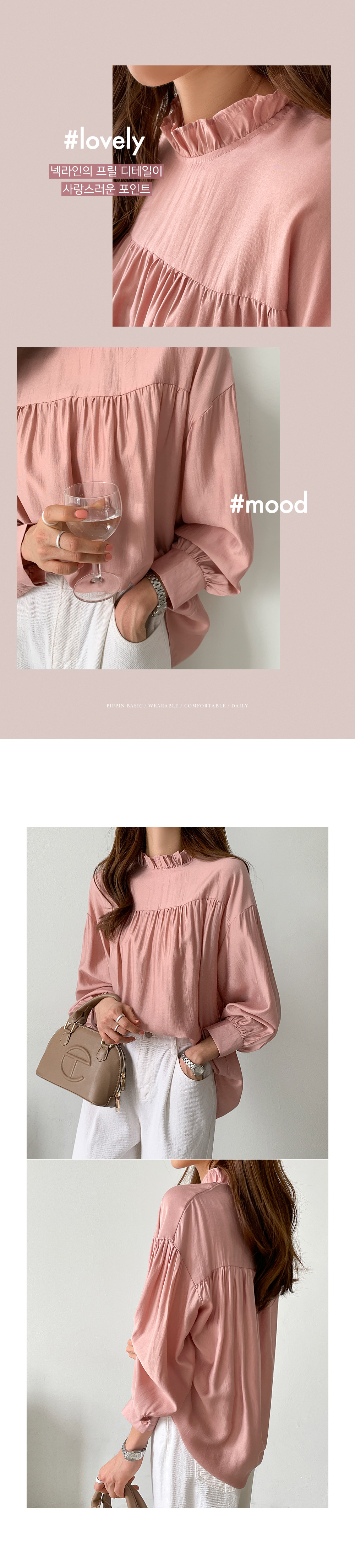 사랑스러운 블라우스예요. 타이트 하지 않은 루즈핏 실루엣으로