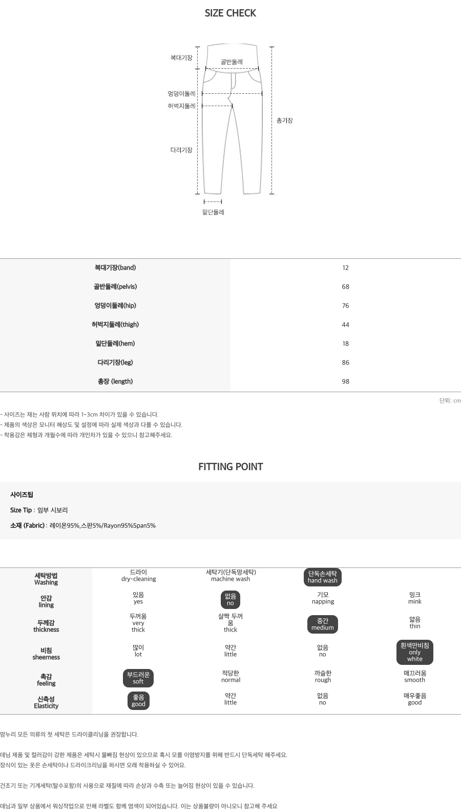 쫀쫀하고 가볍게 레그라인을 감싸주는 원단으로