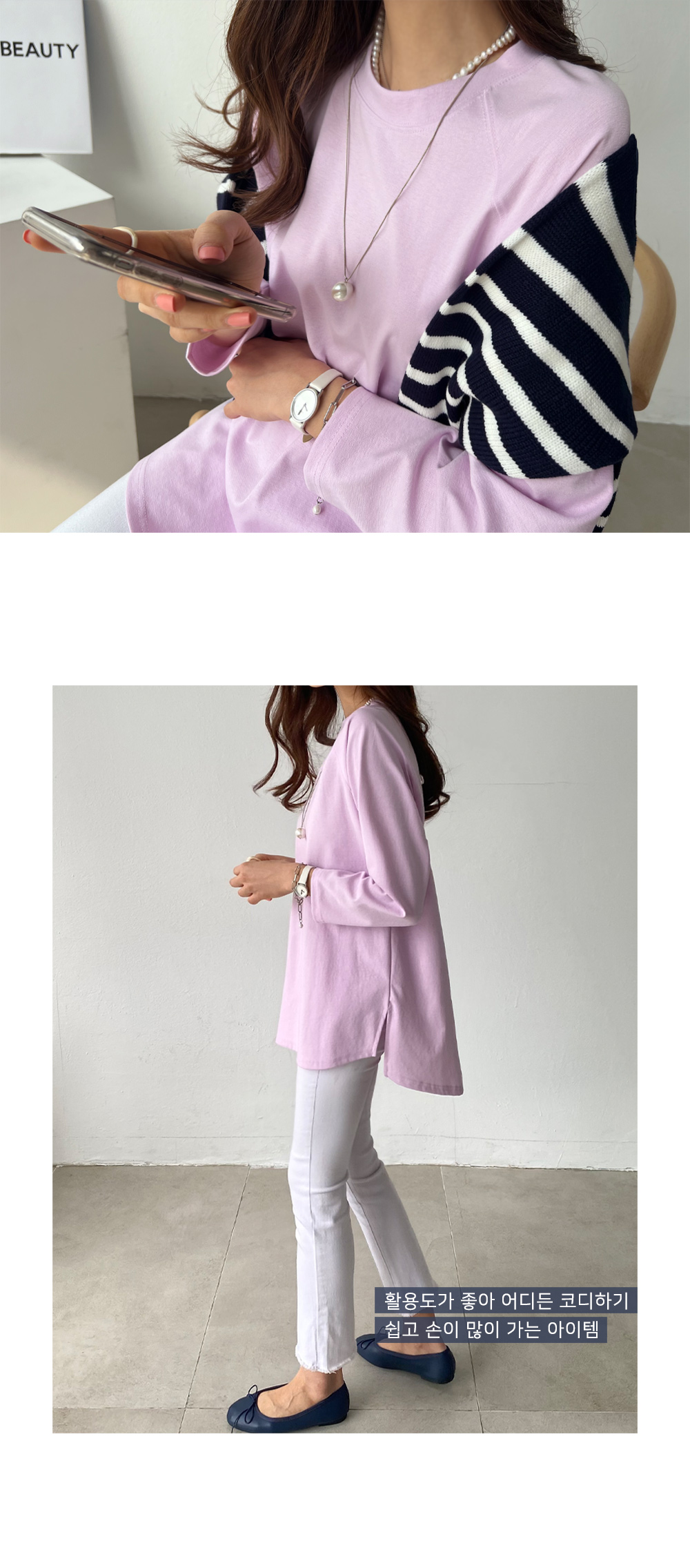 세련된 나그랑 소매로 밋밋함 없이 즐기기 좋아요