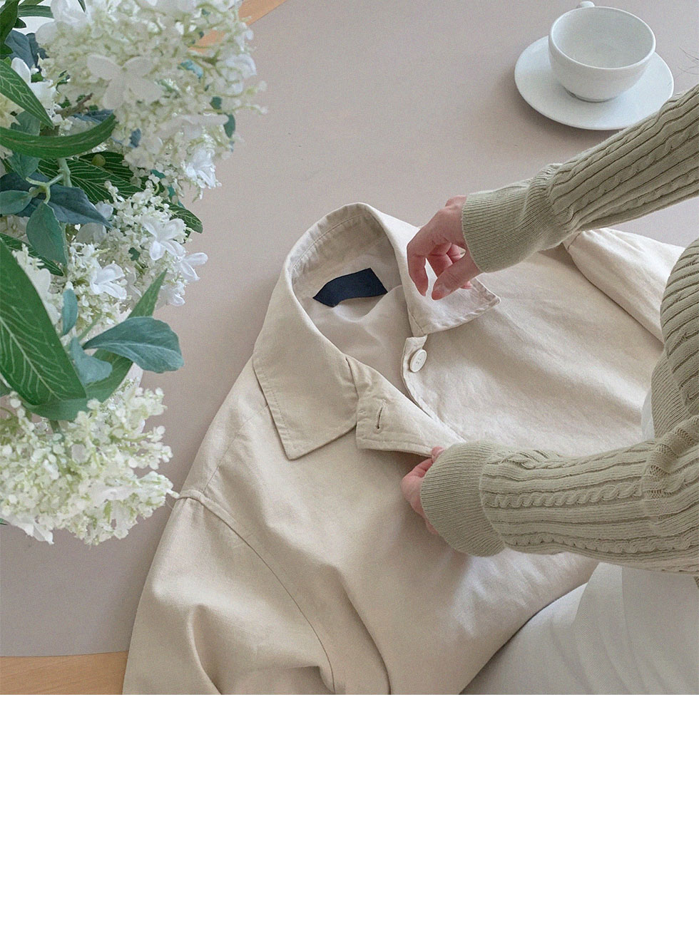 손등을 살짝 덮어주는 소매 기장으로