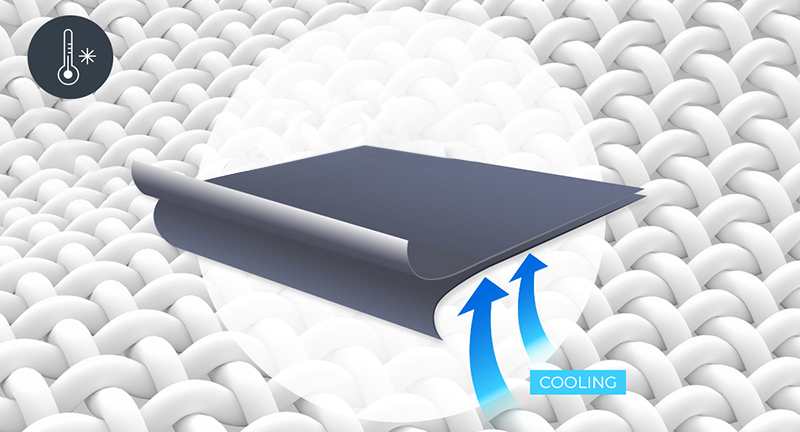 피부에 닿는 안감을 시원한 쿨링 원사로 직조하여