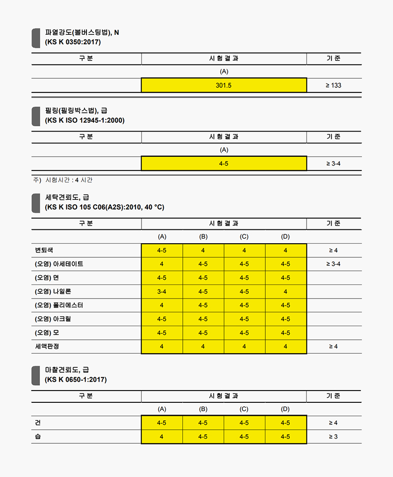 마찰과 세탁, 보풀에까지 강력한 내구성을 보여주어