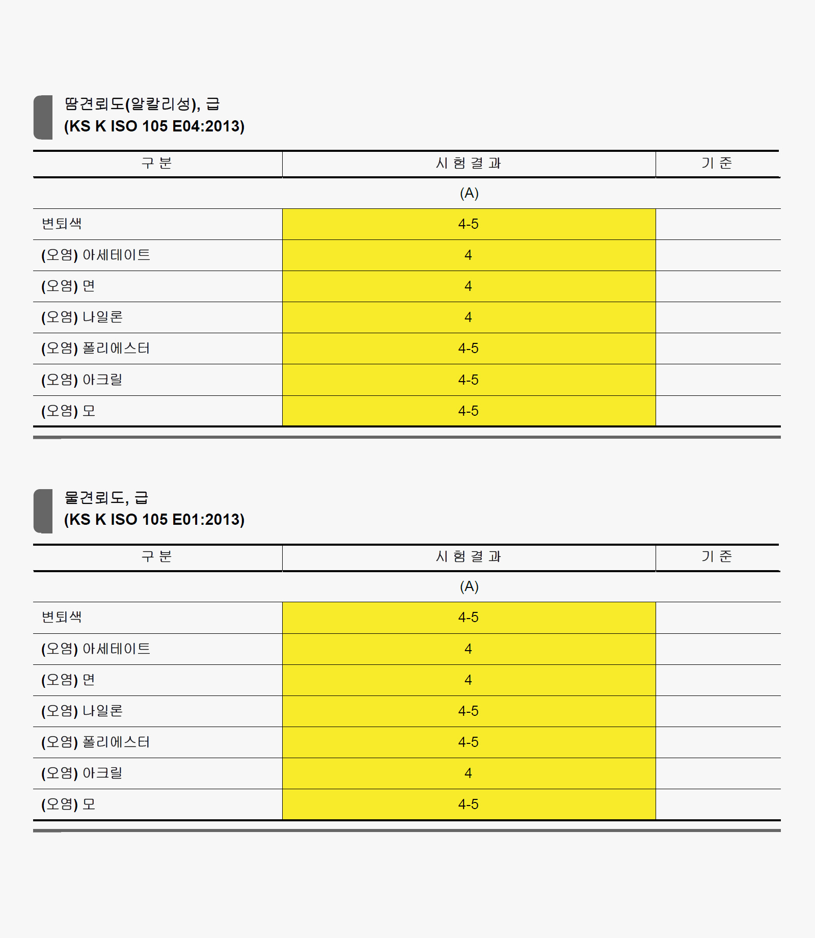 땀을 많이 흘리는 실내 퍼포먼스에도 변색이나 이염 가능성이 낮아요.