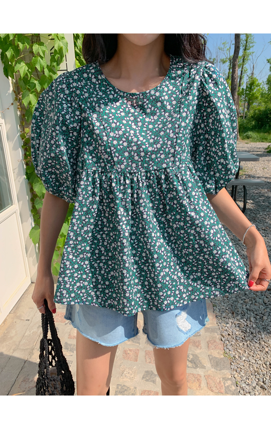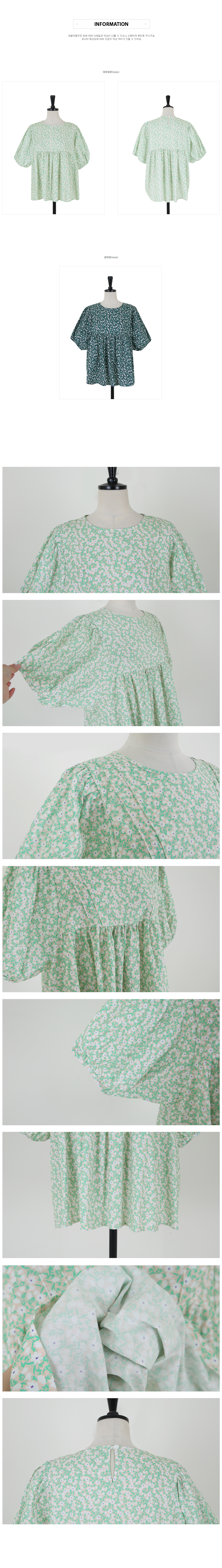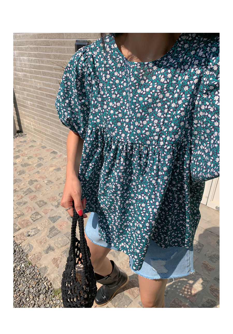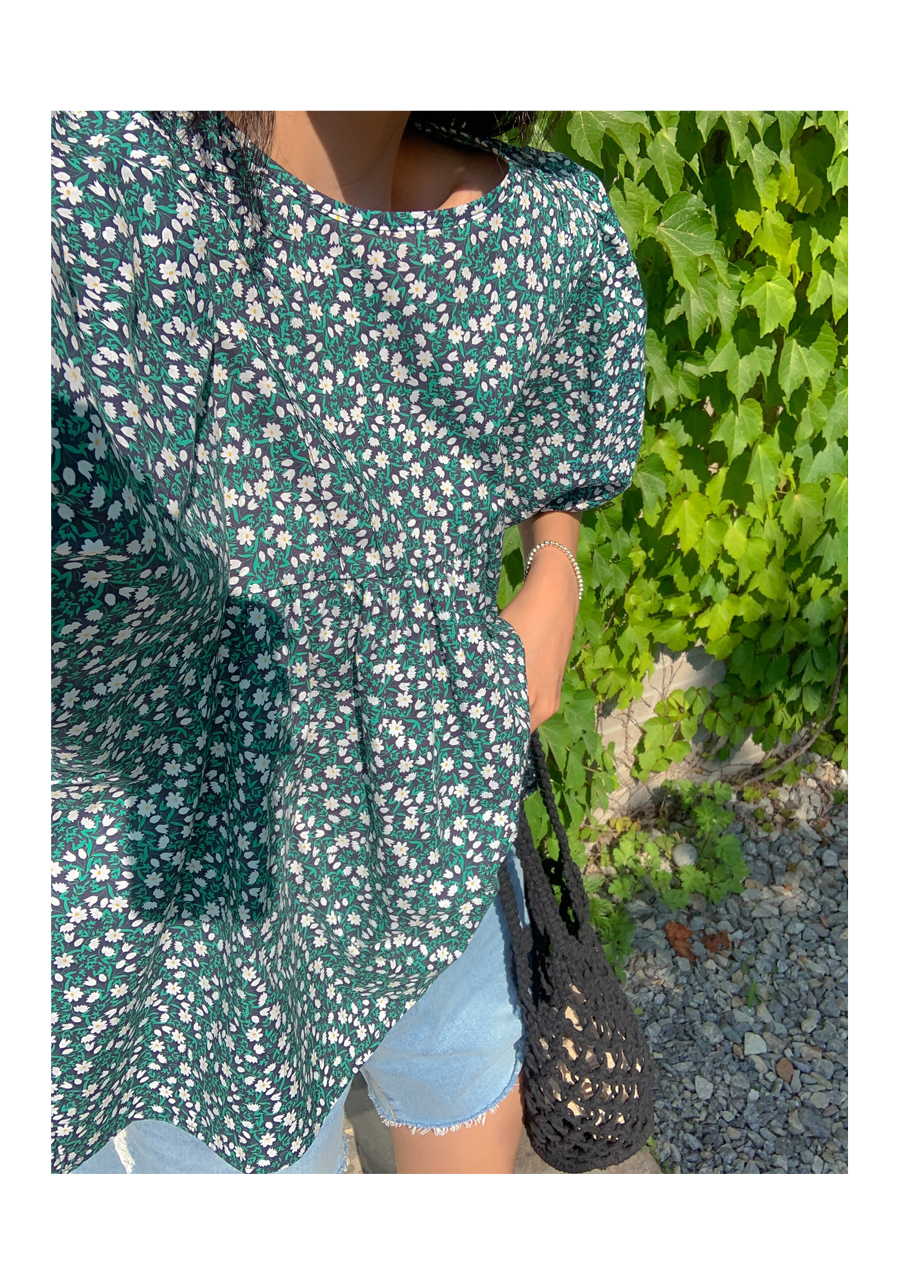 floral shirring puff blouse