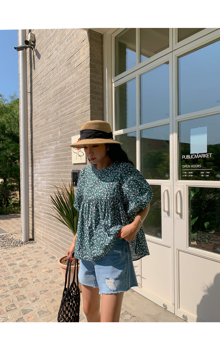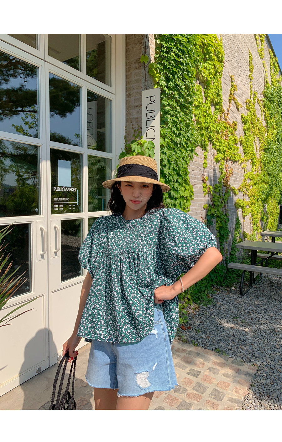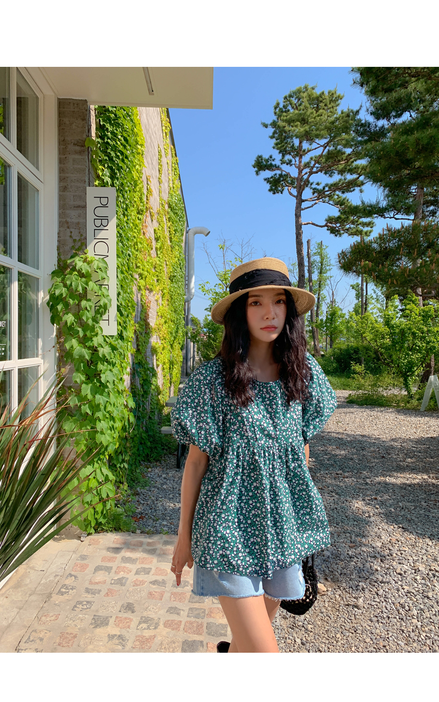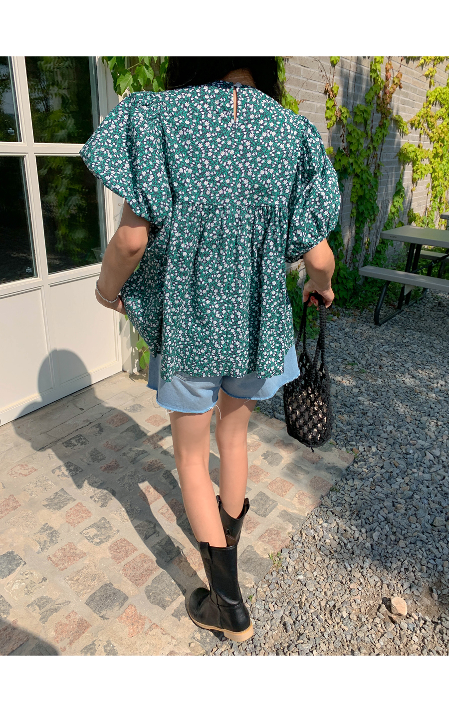 floral shirring puff blouse