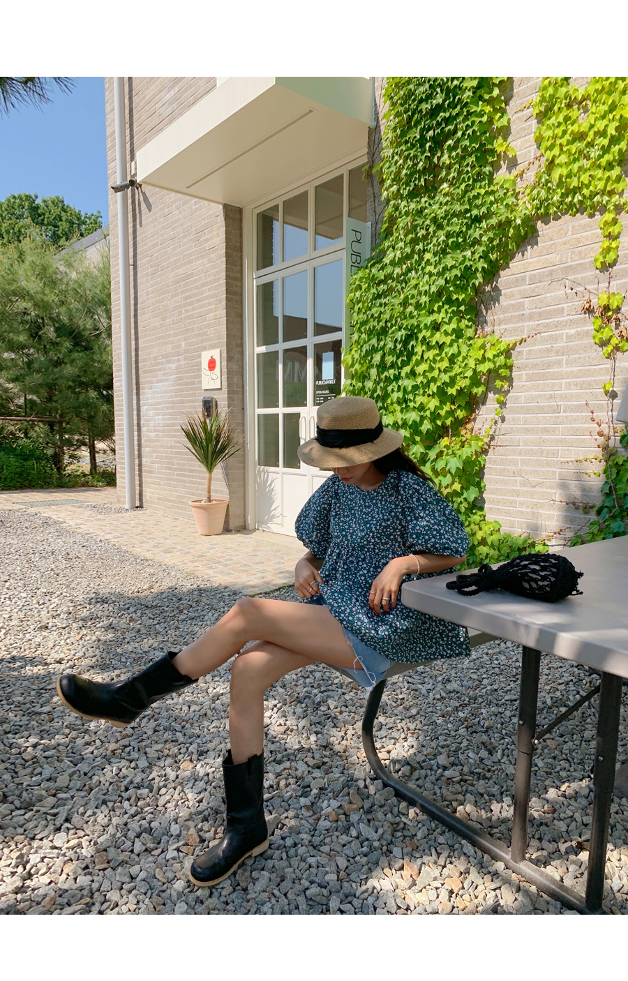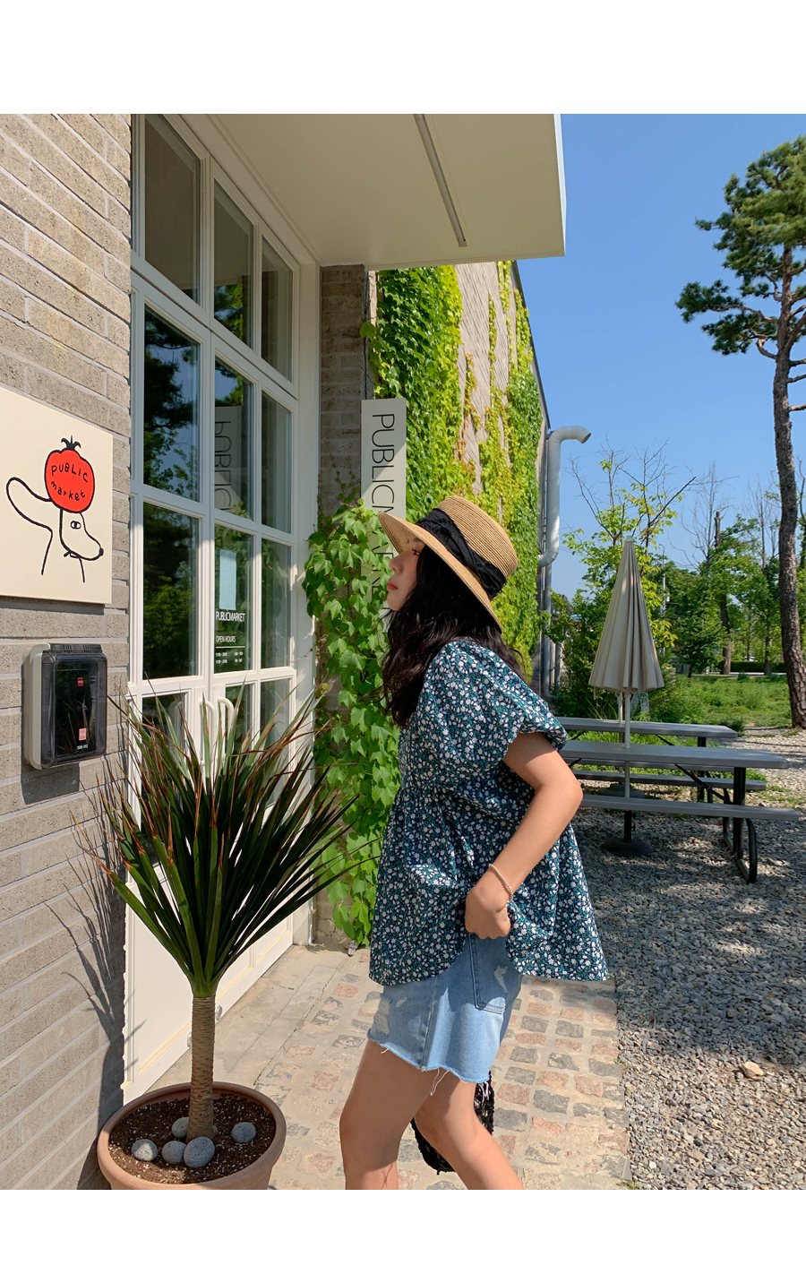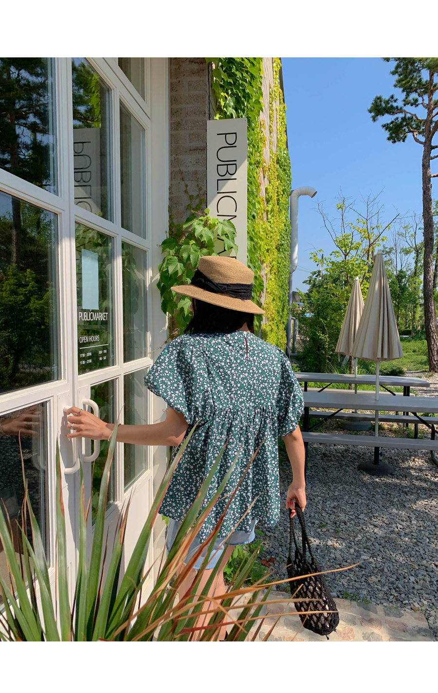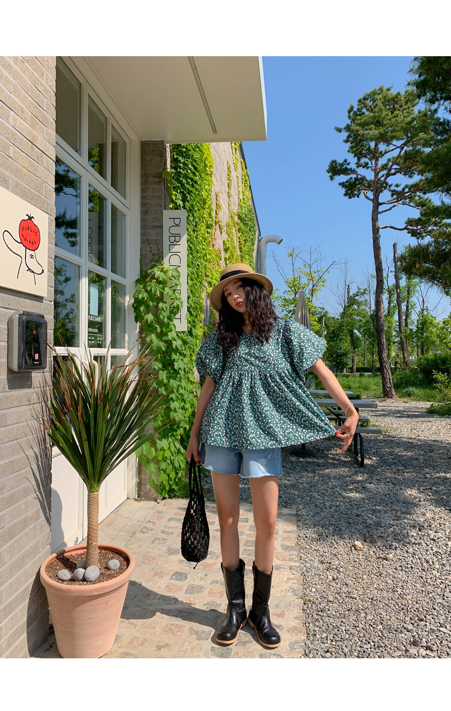floral shirring puff blouse