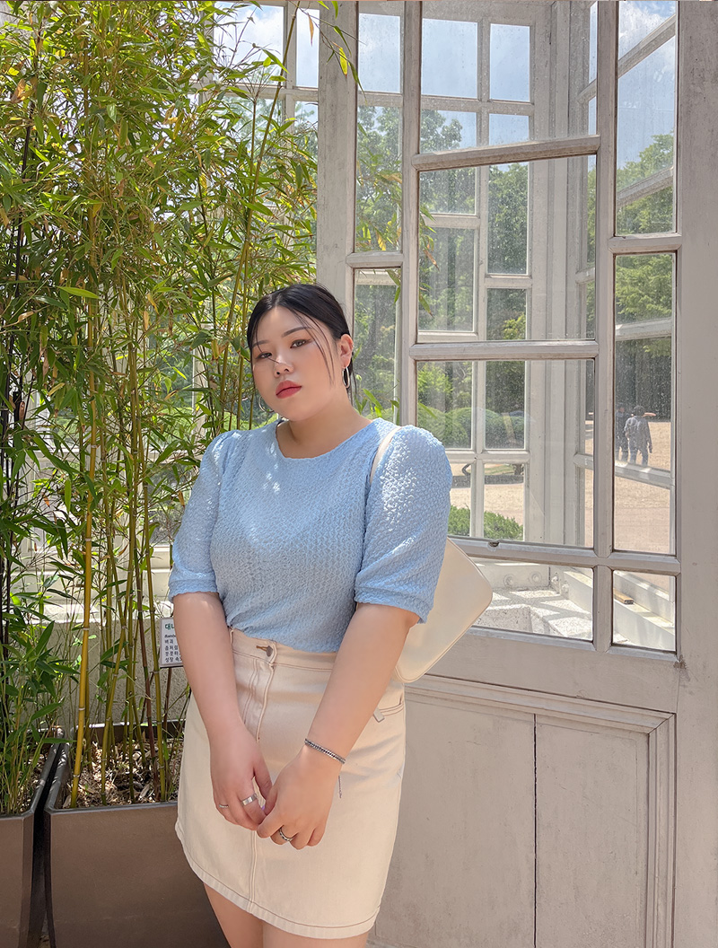 사지통통형으로 팔,다리가 통통하며 허리가 얇은 체형입니다.Hourglass body shape & Relatively plump arms and legs
