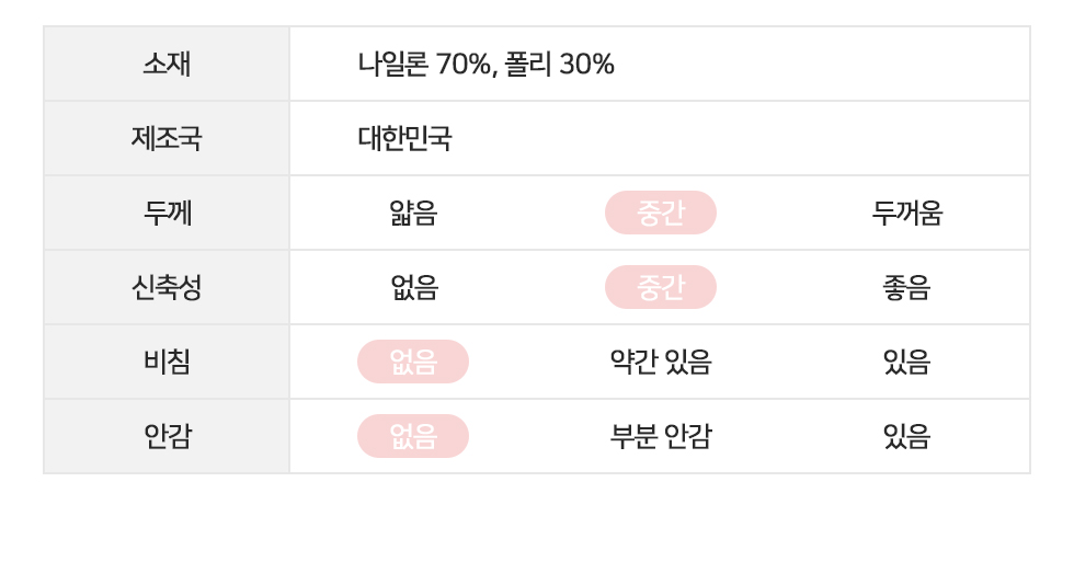 나일론70%, 폴리30%