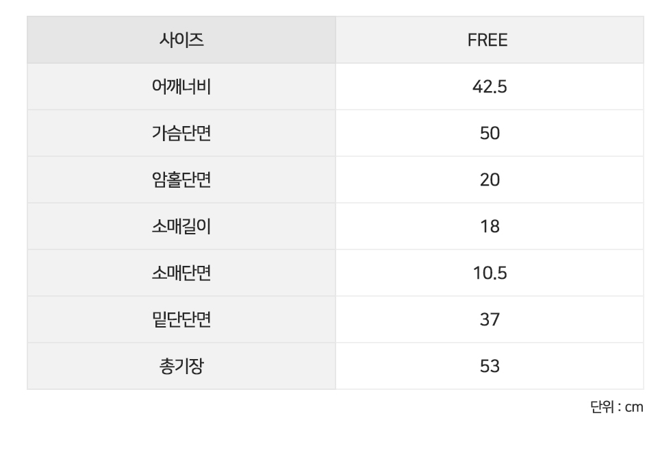 FREE 어깨단면42.5 가슴단면50 암홀단면20